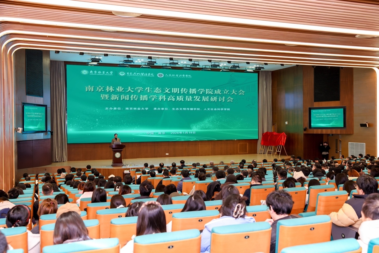 1月18日,南京林业大学举行生态文明传播学院成立大会暨新闻传播学科高质量发展研讨会。中国林学会理事长赵树丛,中国林业出版社总经理杨波,江苏省广播电视总台党委书记、台长、省广播电视集团有限公司董事长葛莱,江苏省记协主席周跃敏,中国林学会副秘书长曾祥谓,南京林业大学校长勇强、副校长张晓琴等出席会议。来自全国新闻传播学界、业界的近三十位知名专家学者与期刊主编,学校相关单位主要负责人,人文学院全体领导班子成员及师生代表等参加活动。开幕式由张晓琴主持。