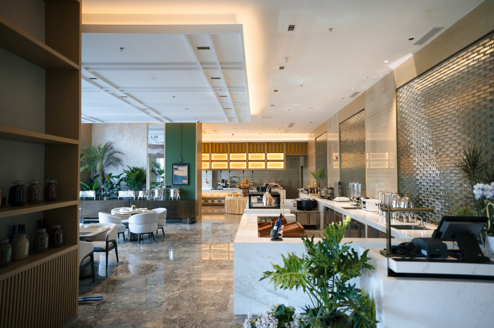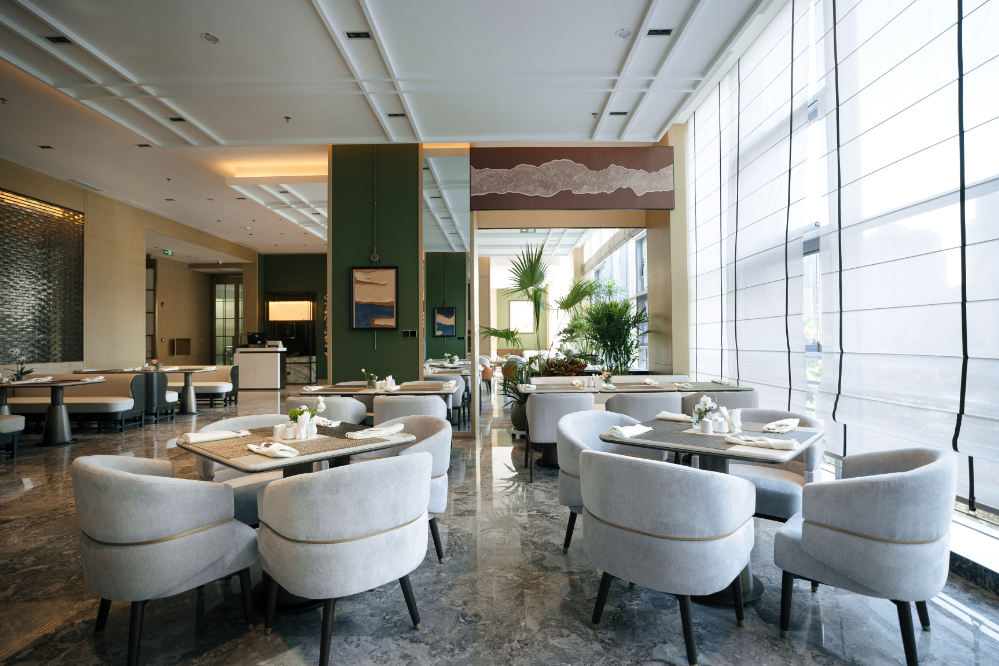 优鲜全日餐厅以“新中式+轻奢”为设计基调,将高端格调与本土文化融合,营造出一种既优雅又亲切的氛围。