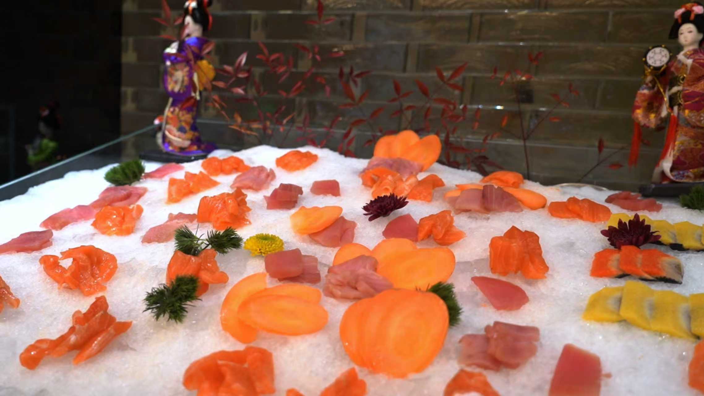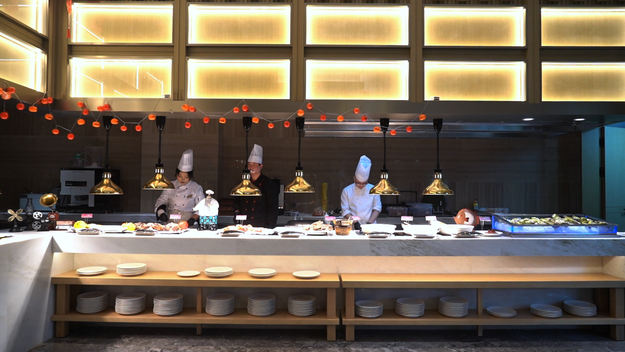 在传统的自助餐厅,现煎牛排、法式羊腿这样的“硬菜”往往需要排队等候,高峰期更是人头攒动。而在优鲜全日餐厅,这些餐品有专人对接。你只需告知口味偏好和熟度要求,便可安心回到座位,等待美食送达。