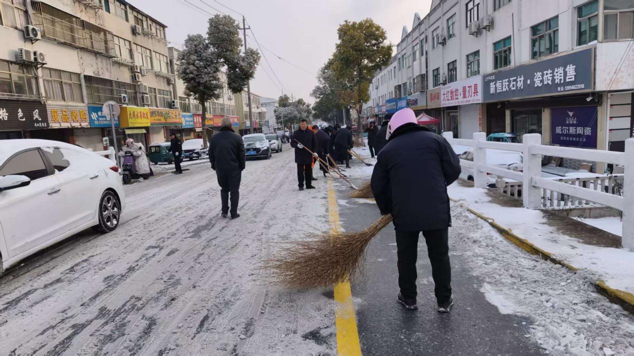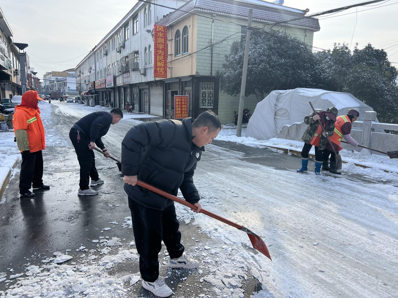 闻雪而动,跑出应急“加速度”。镇政府第一时间启动预案,构建“统一指挥、分片包干”高效体系。应急物资与队伍迅速就位,对主次干道、校园商圈、背街小巷进行全面排查与清理,全力筑牢出行“安全线”。
