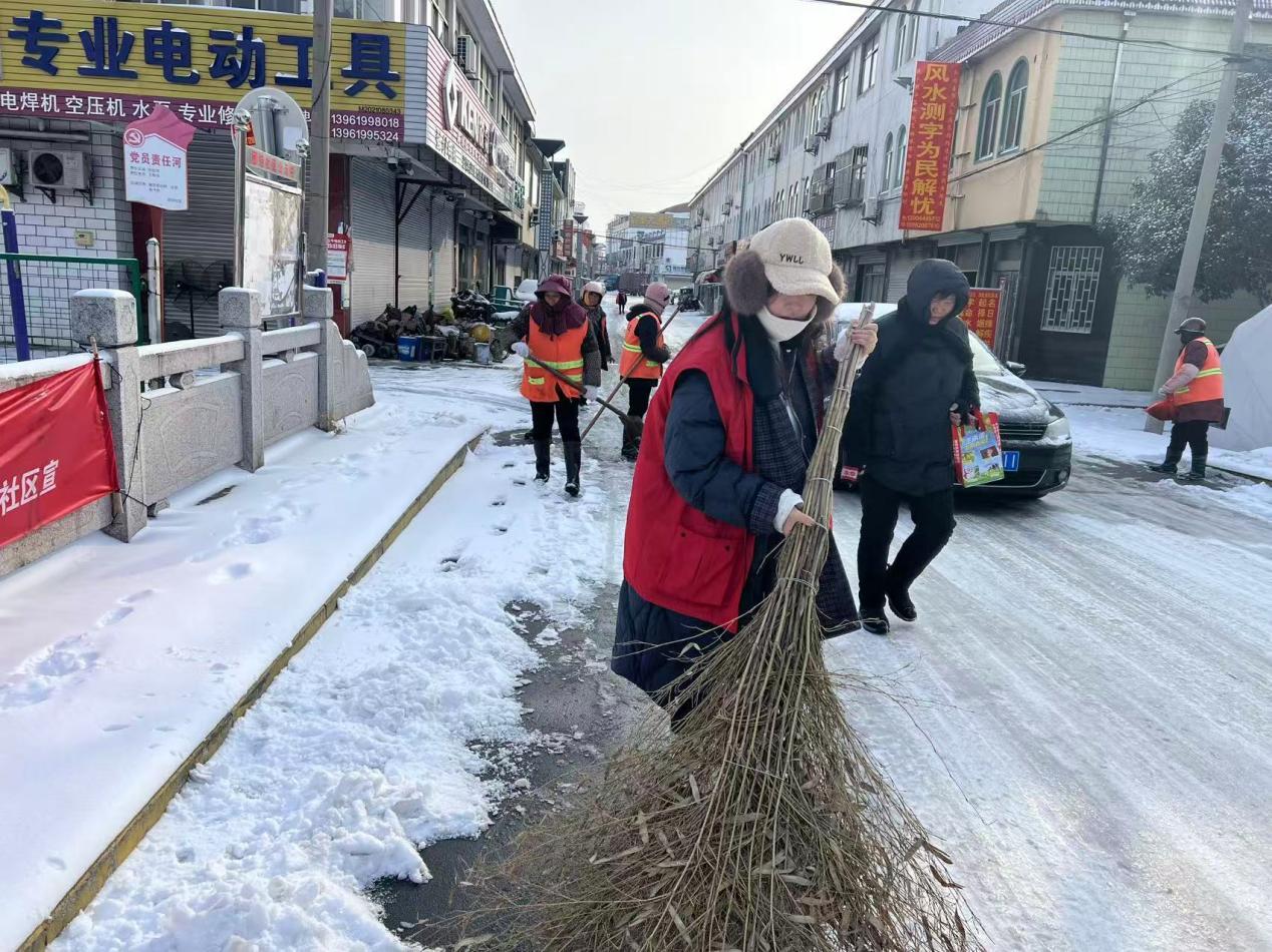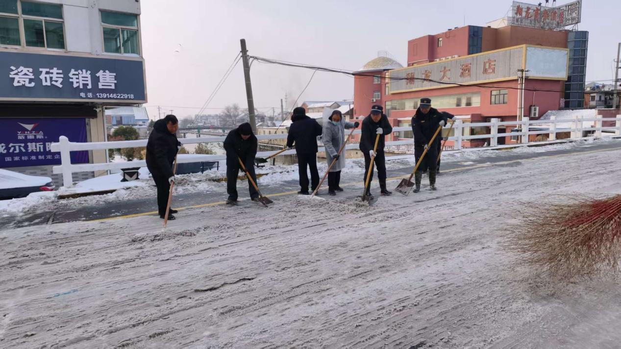 向雪而行,凝聚并肩“同心圆”。鲜艳的“志愿红”与“环卫橙”成为雪中最暖风景。机关干部、党员、群众、商户自发组成攻坚小队,铁锹与扫帚的合奏,驱散了严寒,更奏响了干群同心、共护家园的“奋进曲”。