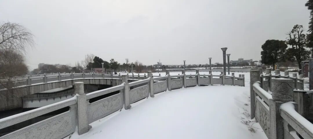 呈祥公园的石桥步道被白雪抚平,