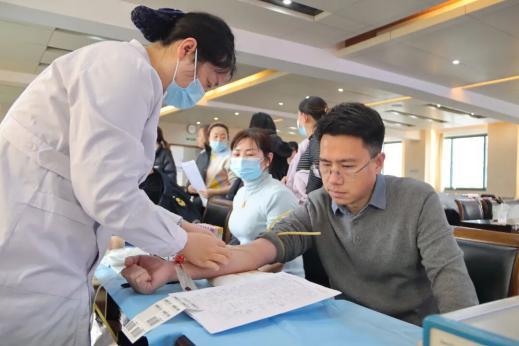 在领导的带动下,献血队伍井然有序。临床医护人员、行政办公人员,老职工、年轻骨干纷纷加入,依次完成填表、体检、化验、采血等流程,脸上洋溢着奉献的笑容。