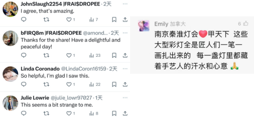 “闻所未闻,感谢分享南京灯彩”——国际网友