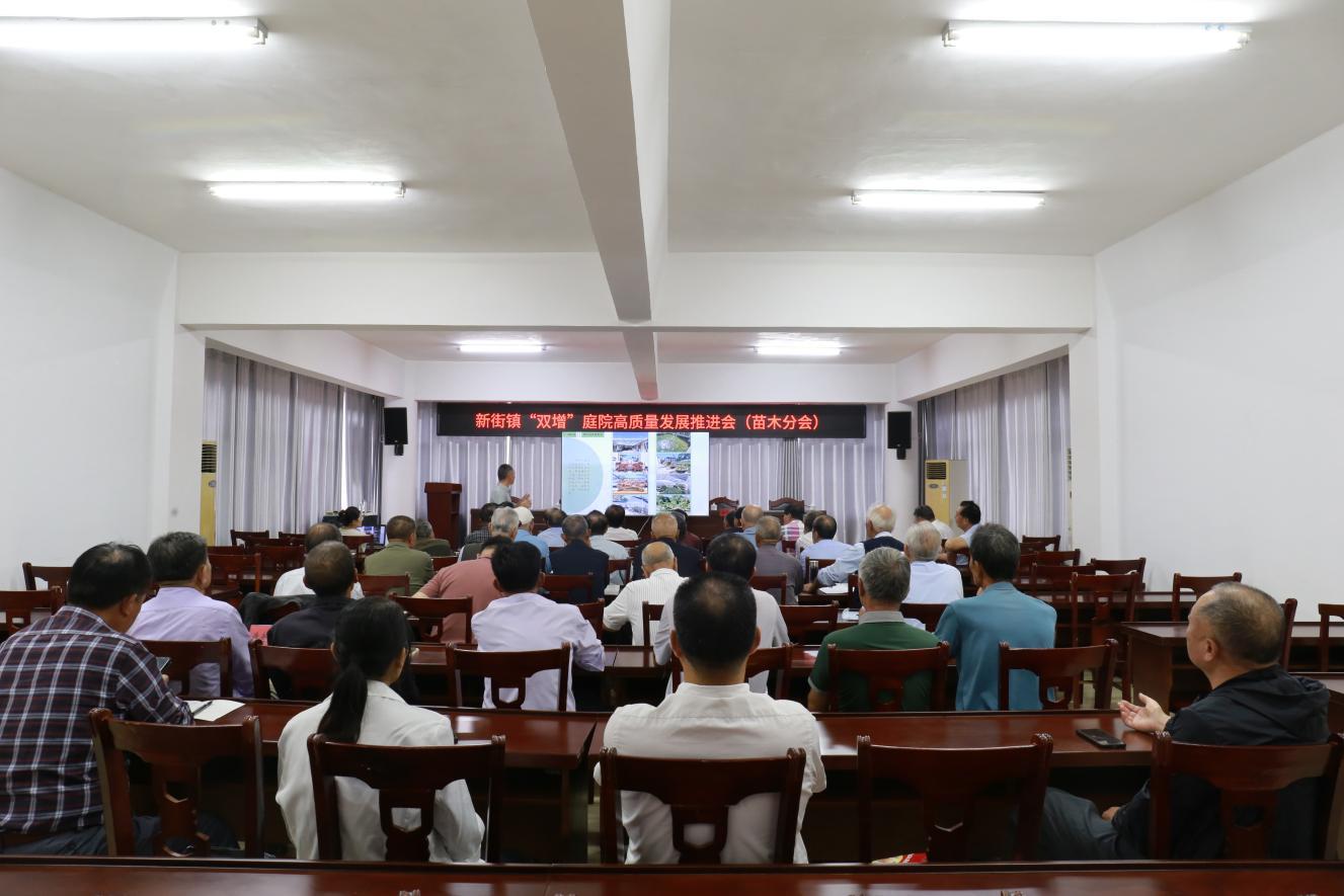 新街镇是江苏省首批苗木特色镇,一半以上的农户从事苗木种植,依托优良的生态基底,积淀了多元业态的苗木产业底蕴。近年来,新街镇老促会分会围绕培育“银发经济”新动能,立足本地特色,结合农村人居环境整治提升工作要求,在全镇发起以“发展庭院经济、实现老有所为”为核心的增收增寿“双增庭院”计划,动员全镇老年群体以苗木种植为手段,以庭院绿化为目标,发挥老年群体经验优势,兼顾劳作的适度性与可行性,从而美化香化家园,增加收入。此举迅速得到全镇老年群体的积极响应,参与计划的老年人群达千余人。镇“两会”分会因势利导,制定标准,精准发力,为双增“示范户”挂牌,并通过开展庭院经济模式专题调研、举办种养管护技能讲座、培树先进典型标杆等一系列举措,先后分3批次对80户示范“双增庭院”进行集中展示。以示范庭院为“田间课堂”,采取“敞开门传经验、请进来学妙招”的方式,引导农户切磋庭院苗木种管技术、交流实操心得,点对点指导兴趣户、薄弱户、脱贫户整理庭院、科学布局、适地种养,让一个个农家小院次第披绿、焕彩增颜。