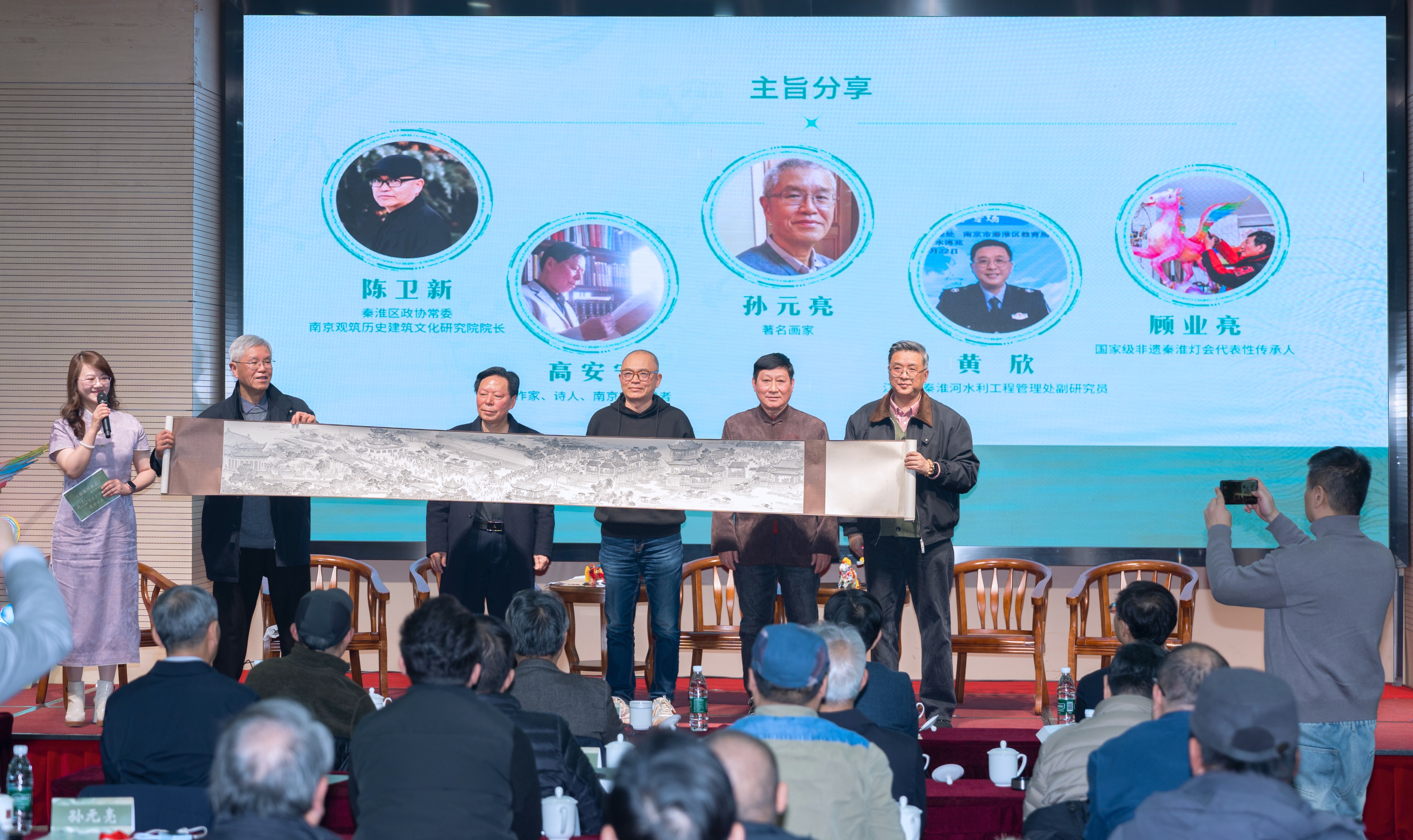 现场还发布了悟影传媒李子韬团队创作的《飞越秦淮河》一镜到底短视频,为秦淮河文化的当代传播增添新载体。同时为《秦淮河新志》图片征集活动获奖作品颁发一二三等项以及入围奖,此次联合南京市摄影家协会共征集图片3372张。孙元亮、高安宁、陈卫新、黄欣、顾业亮作为导读、口述、“三亲”作者代表作分享交流。