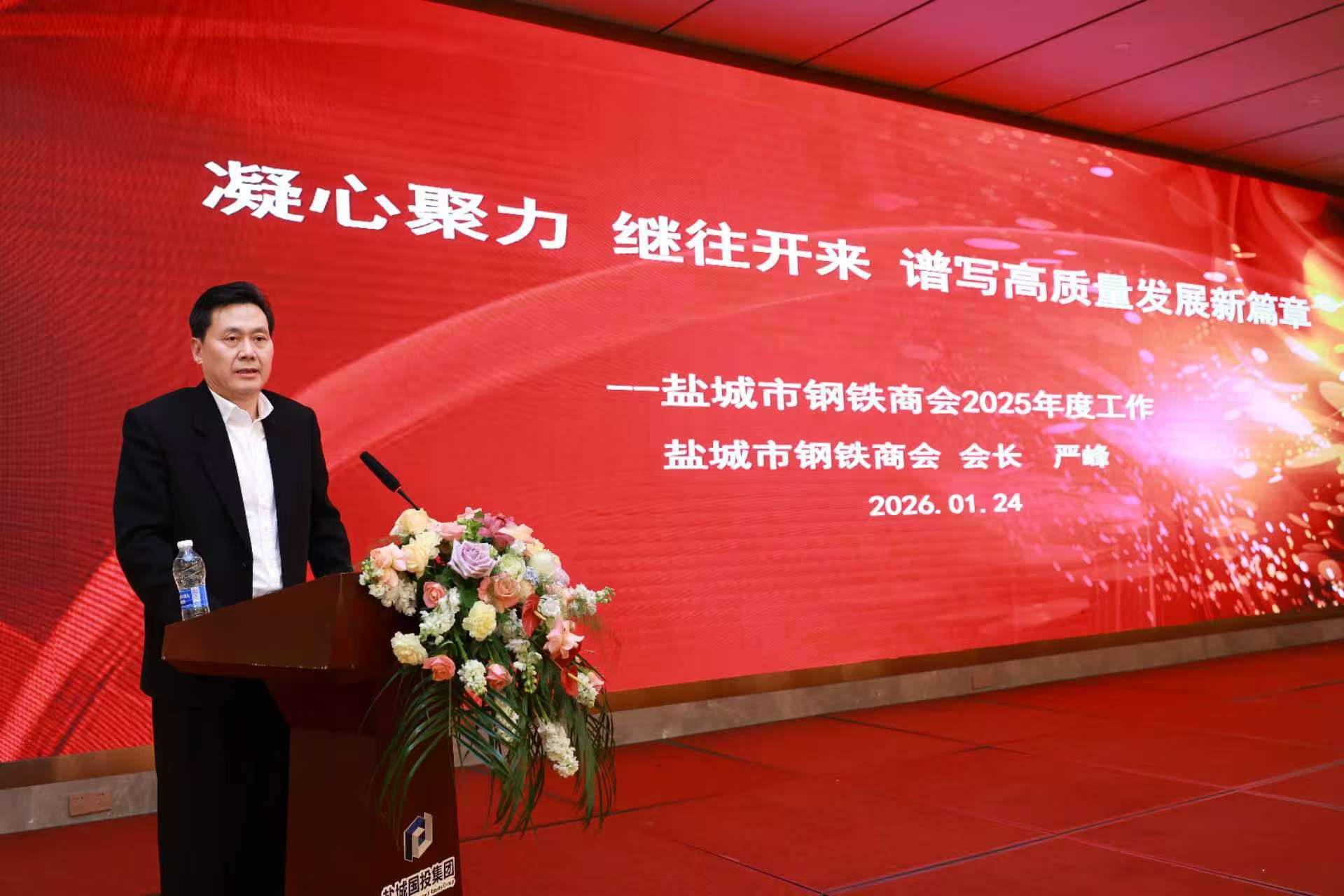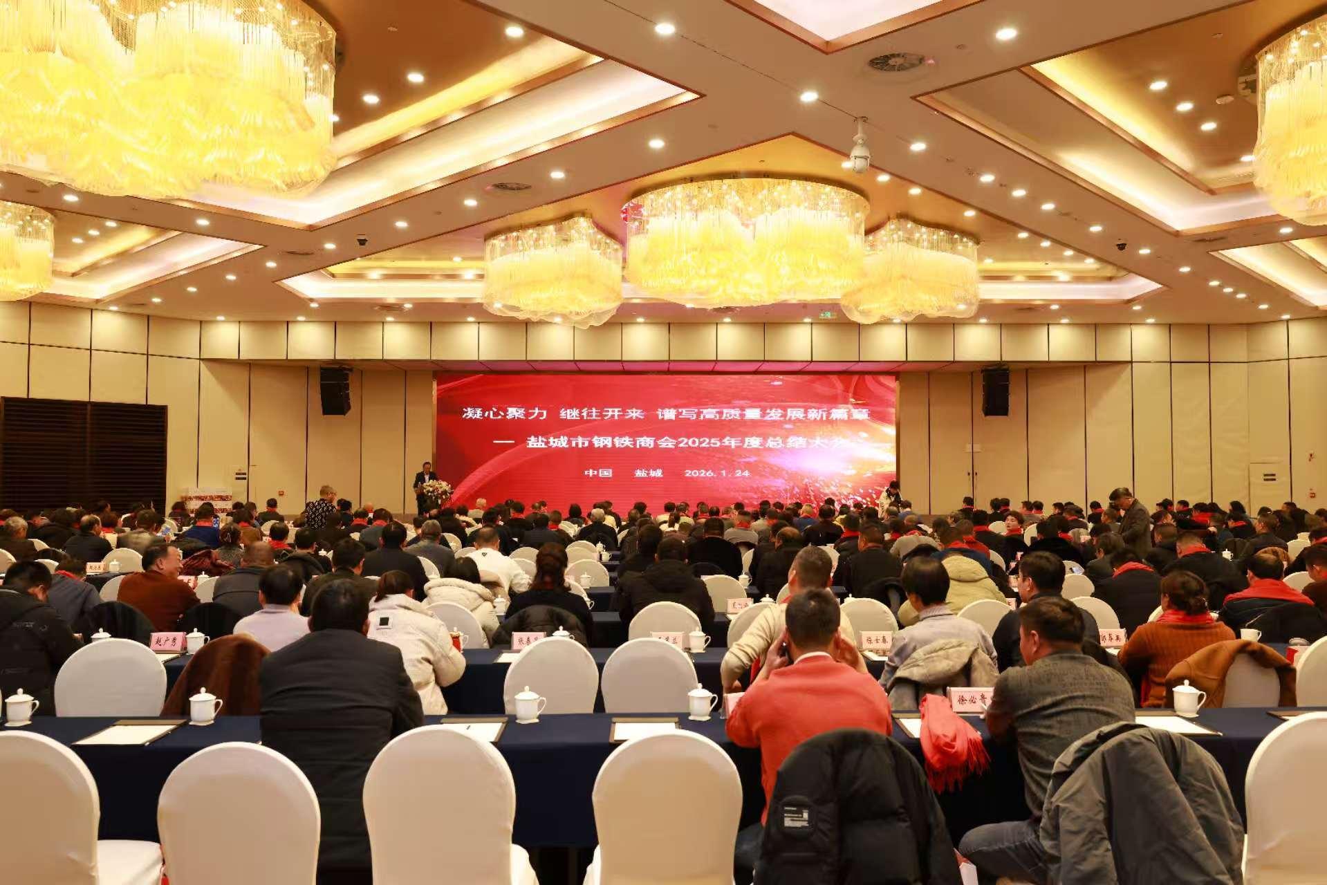 冬日暖阳映盐城,钢铁豪情满黄海。2026年1月24日,盐城市钢铁商会2025年度总结大会在盐城隆重召开。盐城市委社会工作部副部长王策、市工商联副主席滕金霞等领导莅临指导,与商会350余名嘉宾、会员企业家齐聚一堂,共同回顾奋斗历程,擘画发展新蓝图。