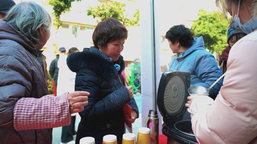 午后阳光微暖,寒意犹存,“暖心供给站”前已悄然排起小队。将一碗碗冒着热气的腊八粥和一杯杯驱寒姜茶递到外卖小哥和快递员以及他们的家人手中,也送到许多住在社区的新老市民手中。“最近天气特别冷,带着孩子来小广场参加活动,还能感受到腊八节的氛围,很有意思。”新南京人陈女士牵着孩子的手,笑着说道。刚结束午餐高峰期配送的王师傅来到广场,呵出一团白气:“不仅自己能感受到温暖,还能和家人一起参与社区活动,感觉我们真正融入了这里,心里踏实多了。”