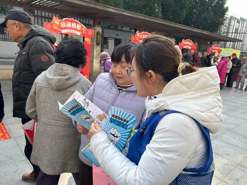 “平安加油站”中,工作人员手持案例展板细致讲解冬季交通安全要点与反电诈知识,大家争相举手抢答,在收获反光贴、暖宝宝等实用礼品的同时,也筑牢了安全意识。