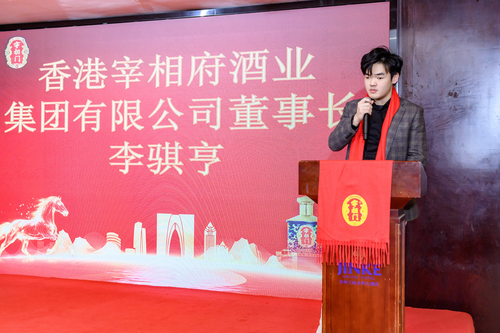 在品鉴会上,还有一位特殊的发言者——香港宰相府酒业集团有限公司董事长李骐亨。他有着双重身份:既是范梅艳之子,又是集团董事会中最年轻的成员之一。