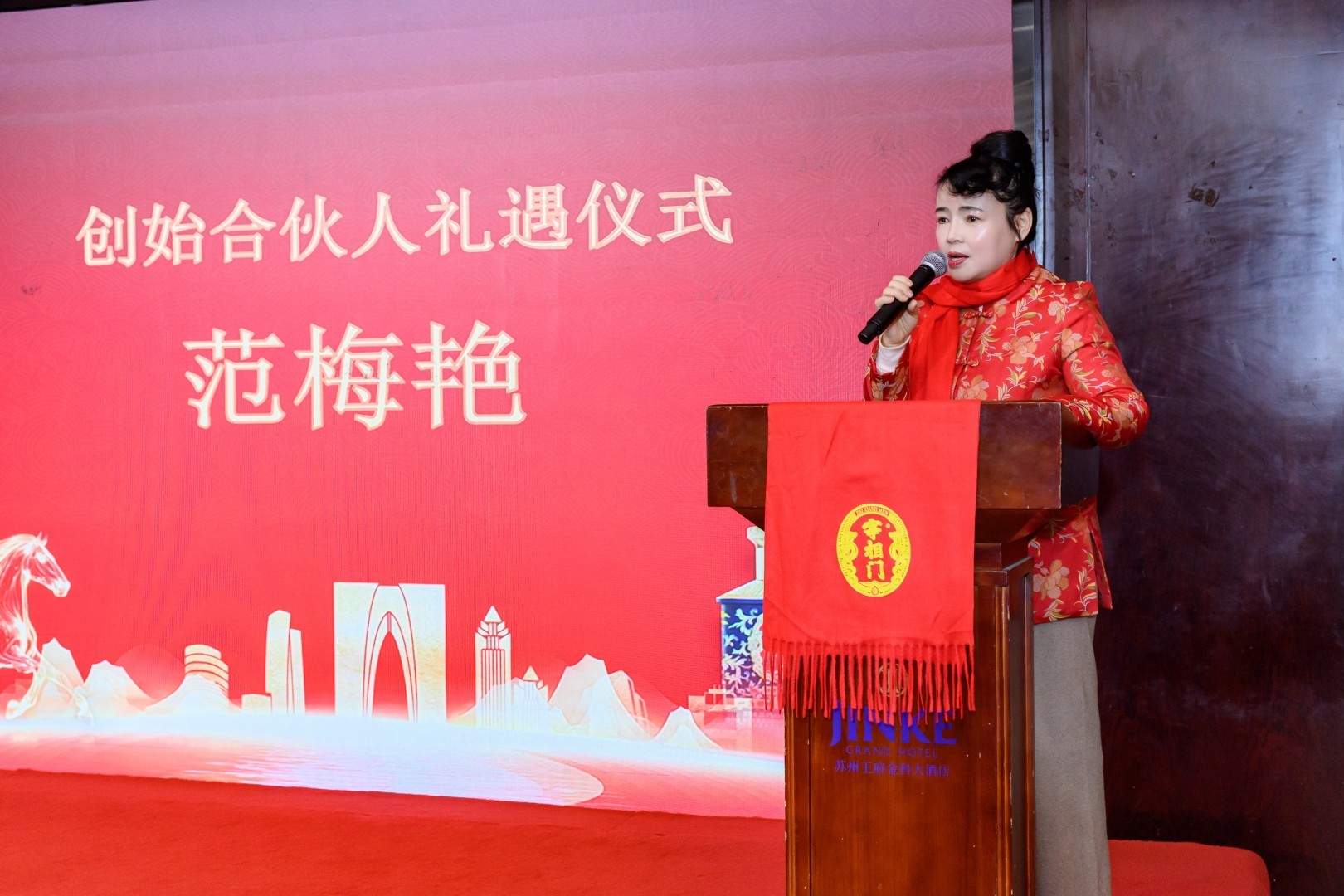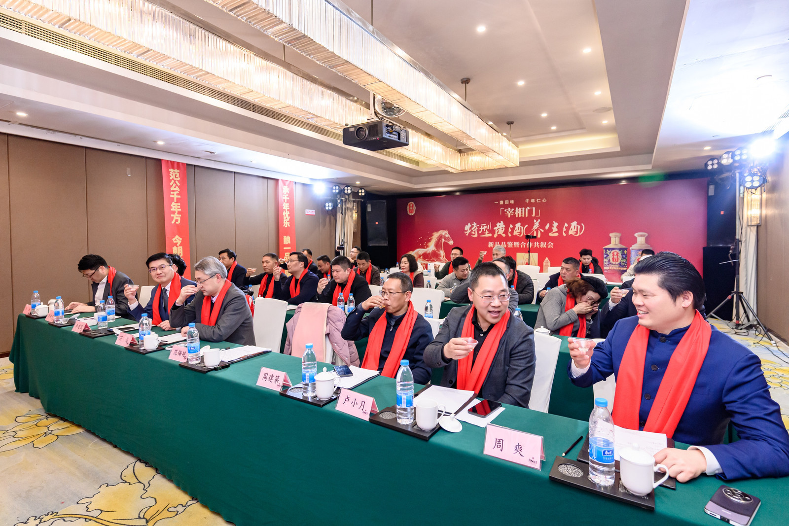 品鉴会现场,一段温暖而充满力量的短片,展示了品牌创始人范梅艳女士二十年的公益与传承之路。随后,香港宰相府酒业集团有限公司董事长李骐亨、浙江古越龙山质量技术中心副主任周建弟、古越龙山销售公司江苏分公司总经理卢小月、香港中华工商总会副主席李建亚、香港苏州商会代表等重要嘉宾悉数登场,从文化传承、生产工艺、市场布局等多个维度,为与会者呈现了这款“特型养生酒”的完整图景。