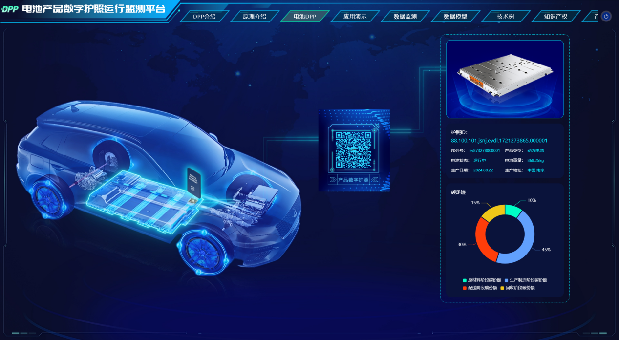 与中国信通院共建的产品数字护照(DPP)注册管理中心(江苏),成功发布全国首张电池产品数字护照,为企业“绿色出海”筑牢技术支撑。