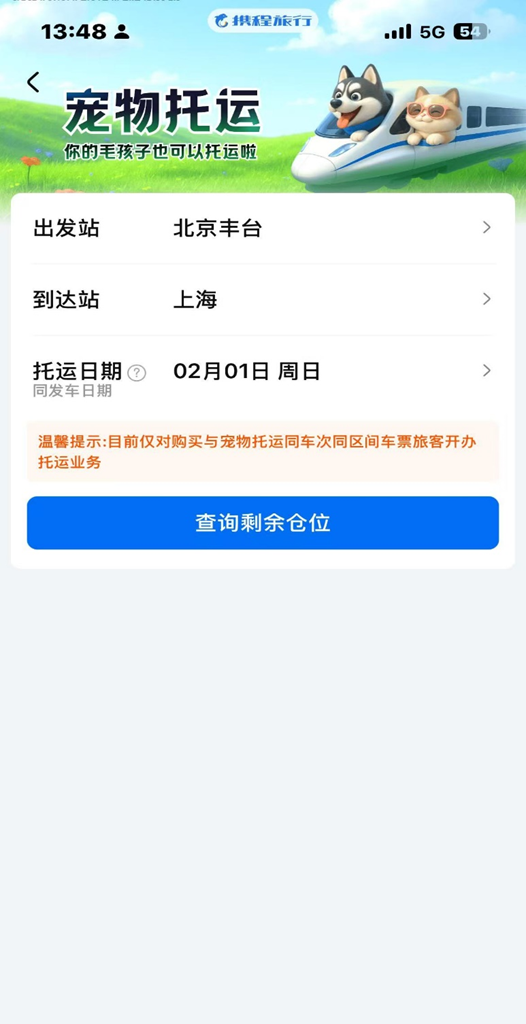 怎么带“毛孩子”坐高铁回家?在办理宠物托运时,首先要注意这项服务仅对“购买与宠物托运同车次同区间车票旅客”开放。
