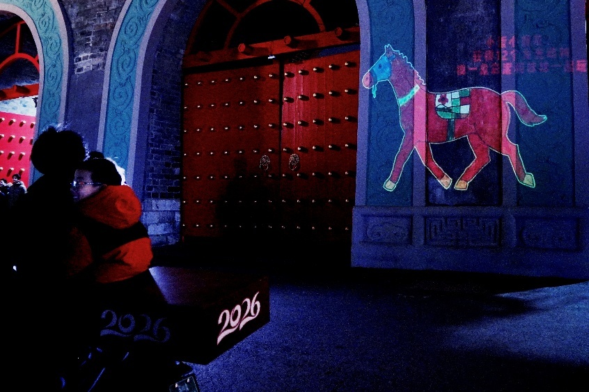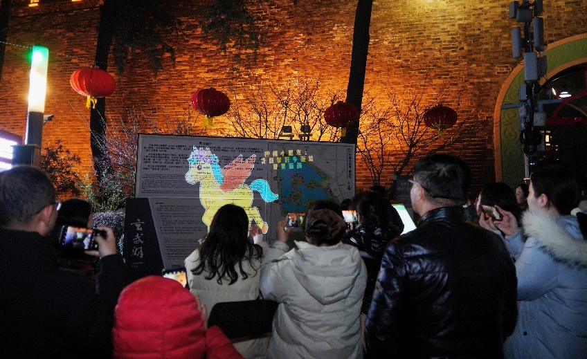 寒风阵阵的夜晚,南京玄武湖公园内仍人头攒动,游玩的、散步的、慢跑的人络绎不绝。2026年1月29日晚,一群孩子随家长聚集在公园的城墙下,他们不惧严寒,兴致勃勃地参加“造梦—奋蹄2026·马上出发”正式亮相活动,显得特别有活力。