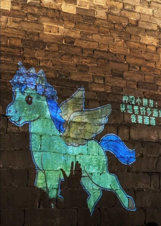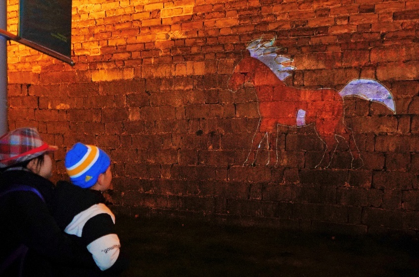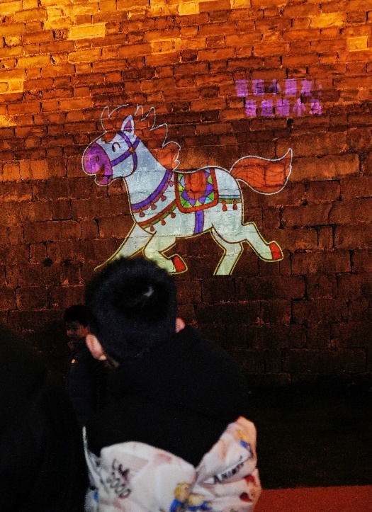计划的首次呈现已于近日在南京历史文化地标——玄武湖公园的城墙区域温情上演。通过定制改造的电动车移动投影技术,一匹匹充满活力与希望的骏马光影动画随着电动车的移动,跃然于古老的明城墙之上行走,历史厚重感与未来憧憬在此刻交汇,形成震撼人心的视觉景象与情感共鸣。
