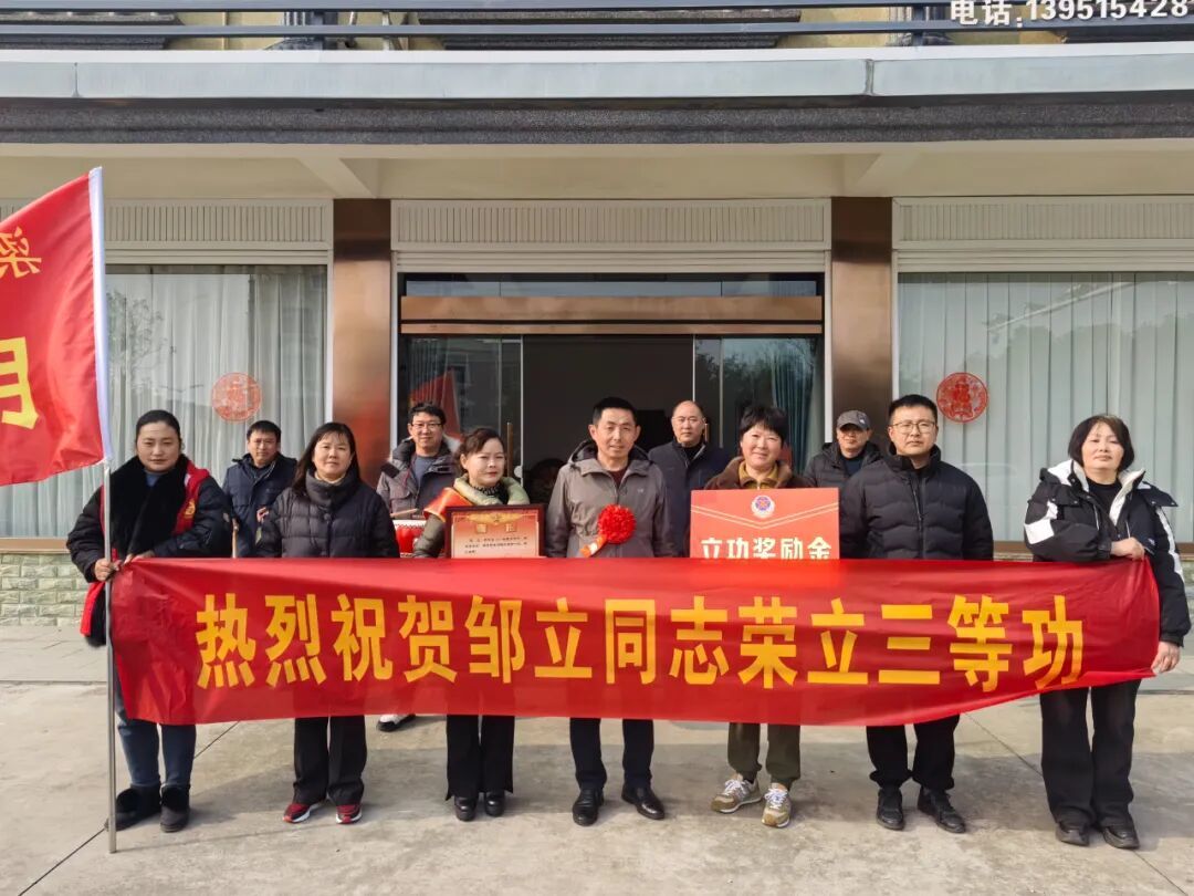 最后,“喜报团”来到梁垛村,为现役军人邹立家庭送来了喜报和立功奖励金,感谢他们为国家、为部队输送了优秀的人才,为家乡赢得了荣誉。