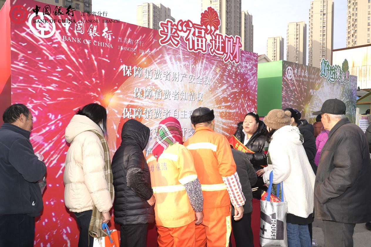 “年味不仅是团聚和喜庆,更应该是踏实和安心。”中国银行江苏省分行工作人员表示。在热闹的集市中,中国银行员工化身“金融摊主”,耐心解答市民关于账户安全、理财疑惑、防范诈骗的各种问题,将“金融为民”的初心融入最具烟火气的场景。“把服务送到集市,把知识融入游戏,我们希望能打破金融知识的距离感,让消保工作真正活起来、暖起来。”