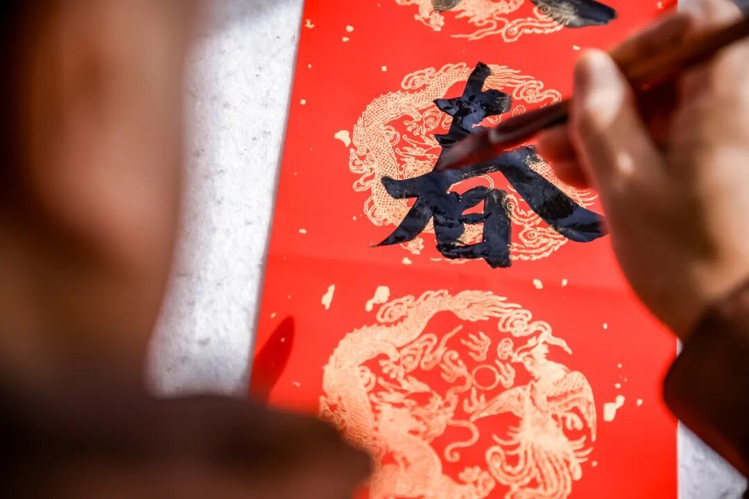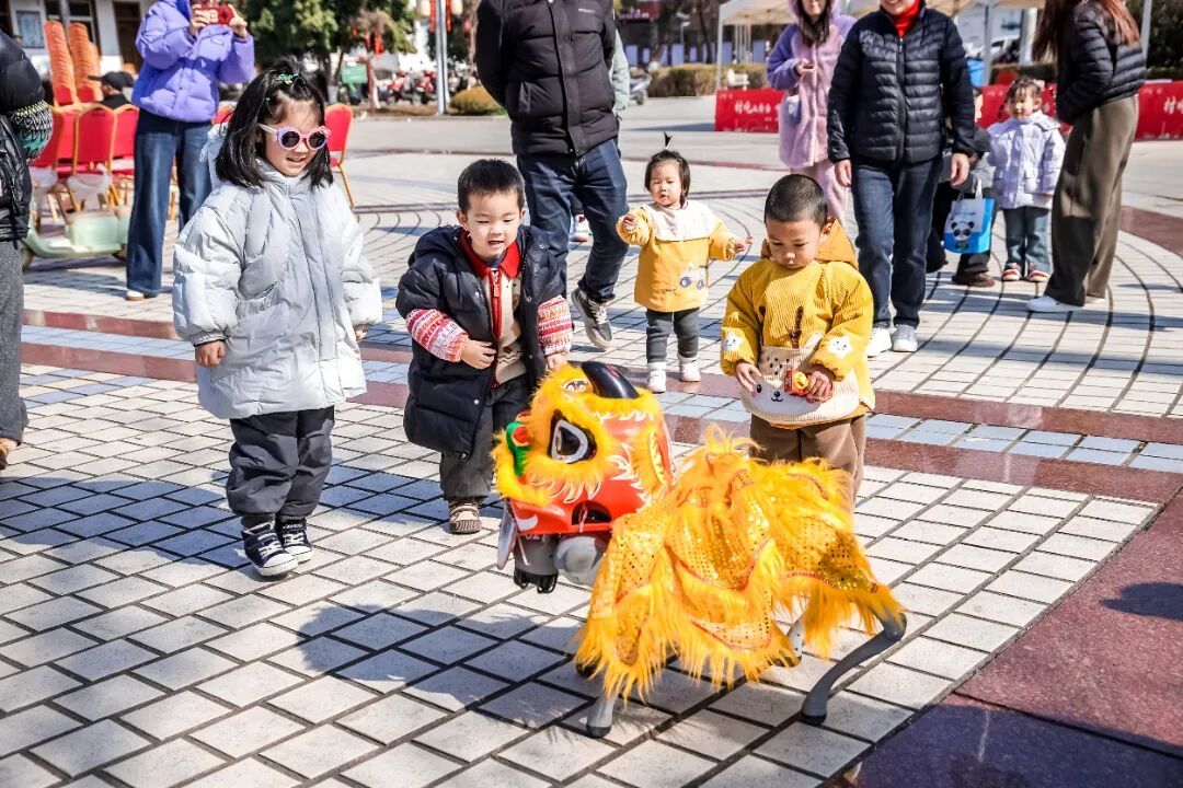 春联摊位前墨香阵阵,一幅幅刚写好的春联整齐摆放,传递着新一年的美好期盼。一旁的“灵灵”“峰峰”形象玩偶被不少家长和孩子团团围住,摇摇晃晃的萌趣模样,时而与小朋友击掌互动,时而摆出可爱造型配合拍照,成为现场最受欢迎的“明星”。