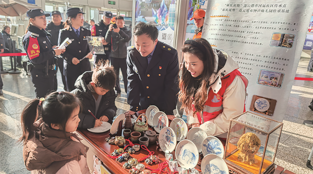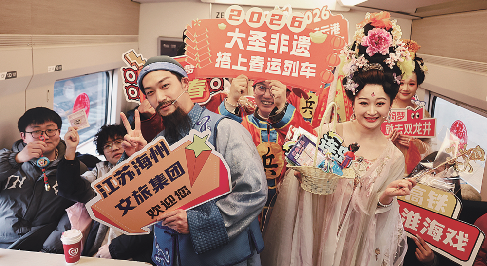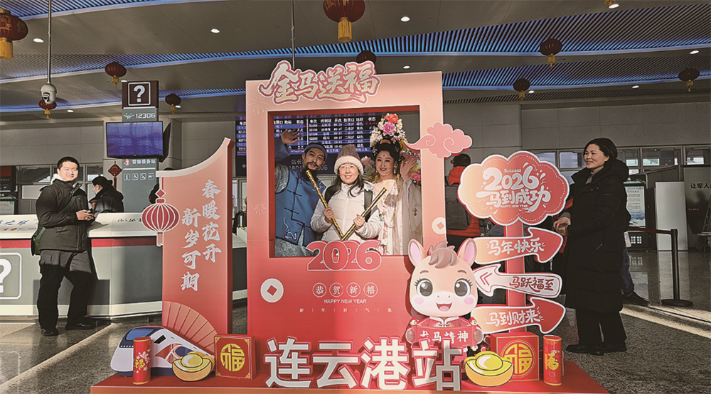与周先生父子一样,不少旅客被车站举办的“高铁寻‘连味’非遗贺新春”活动吸引。主舞台区,一场融合传统与时尚的非遗展演正精彩上演:新民乐串烧以二胡、琵琶奏响欢快节拍,国家级非遗淮海戏《回娘家》选段唱出浓浓乡情,《镜花缘》情景秀与“山海奇缘·西游贺岁”表演生动呈现本地文化特色,赢得旅客阵阵掌声。互动区内,围绕花果山典故、连岛风情设置的趣味问答,也让旅客在欢声笑语中加深了对连云港的了解。
