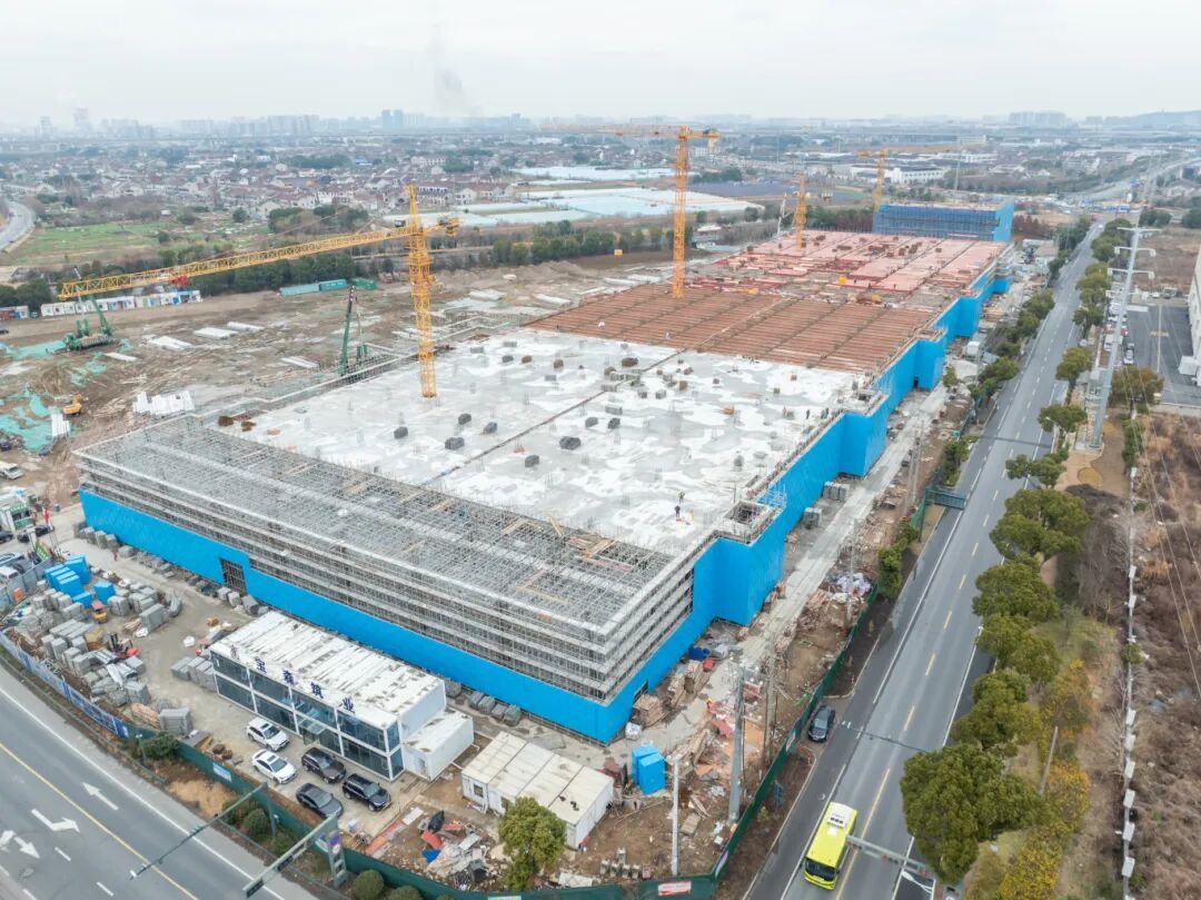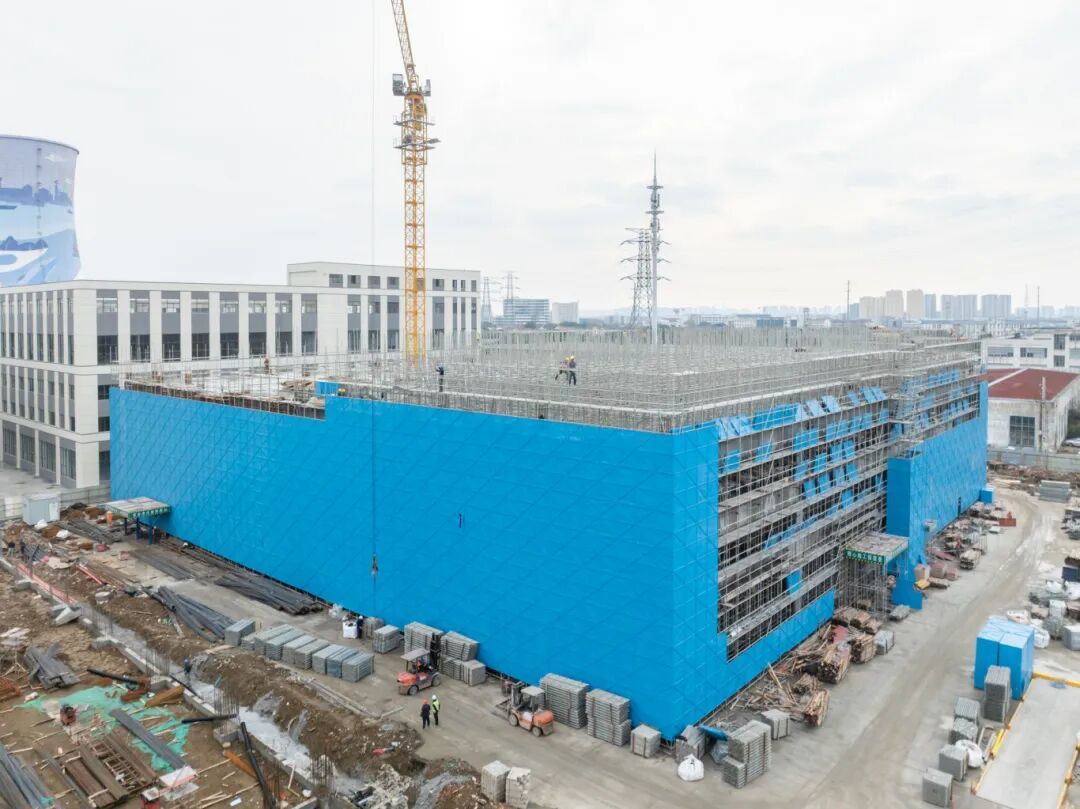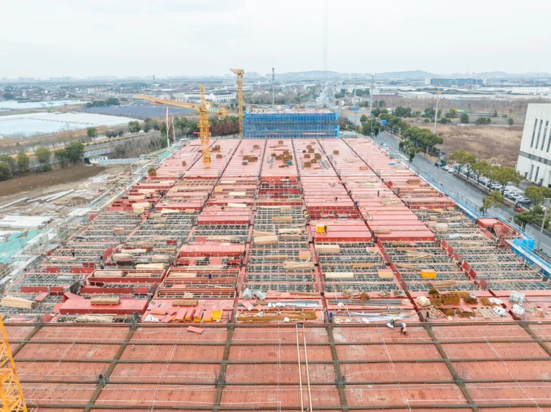 项目副经理张祺介绍,目前最大单体车间正超预期快速“拔节生长”,时效进度比预期快了近一倍,力争春节前完成1号车间“三层结平”,为5月封顶夯实基础。