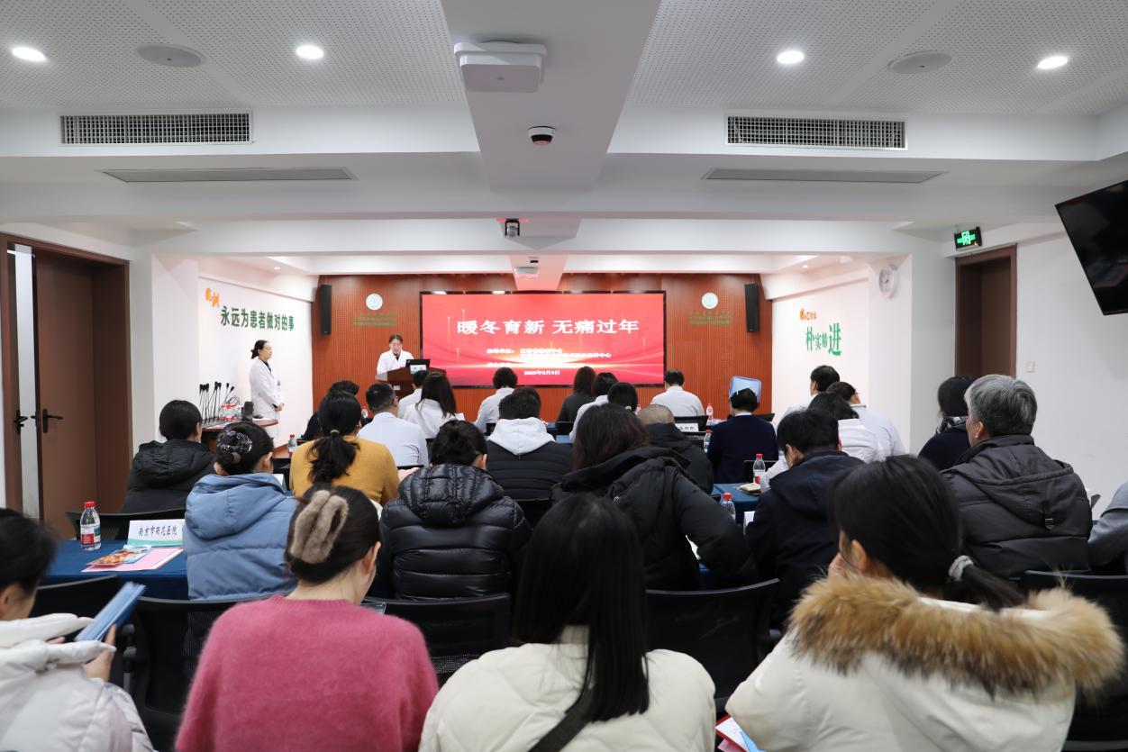 本次活动采取“科普培训+床边慰问”双线推进模式。疼痛康复科与药学专家开展镇痛专题讲座,针对常见用药误区提供科学指导;与此同时,与会人员走进疼痛科病房,为患者送上祝福卡片、科普手册及新春礼包,在细节中传递尊重与温暖。