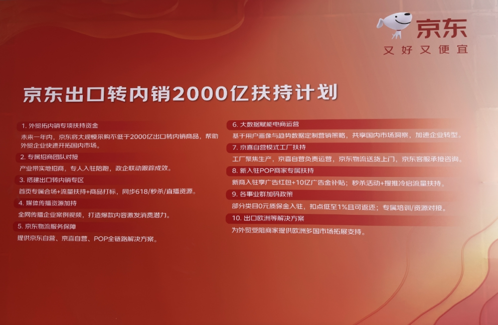 线下渠道稳步拓展的同时,线上平台也成为外贸企业开拓内销市场的重要阵地。2025年起,宿迁市政府联合京东集团率先启动2000亿元出口转内销计划,邀请3000家优质商家走进宿迁,促成500家本地企业深度参与时尚运动、3C家电等细分领域对接。