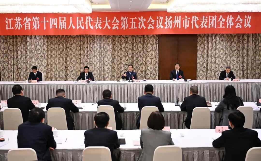 2月5日下午,出席省十四届人大五次会议的扬州市代表团举行全体会议,传达大会主席团第三次会议精神,审议省人大常委会、省高级人民法院、省人民检察院工作报告,以及《江苏省民营经济促进条例(草案修改稿)》和《江苏省农产品质量安全条例(草案修改稿)》。扬州代表团团长、市委书记王进健主持会议。