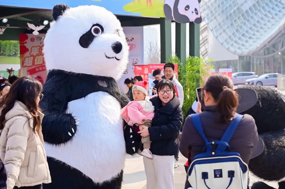 熊猫人偶定时巡游萌化全场