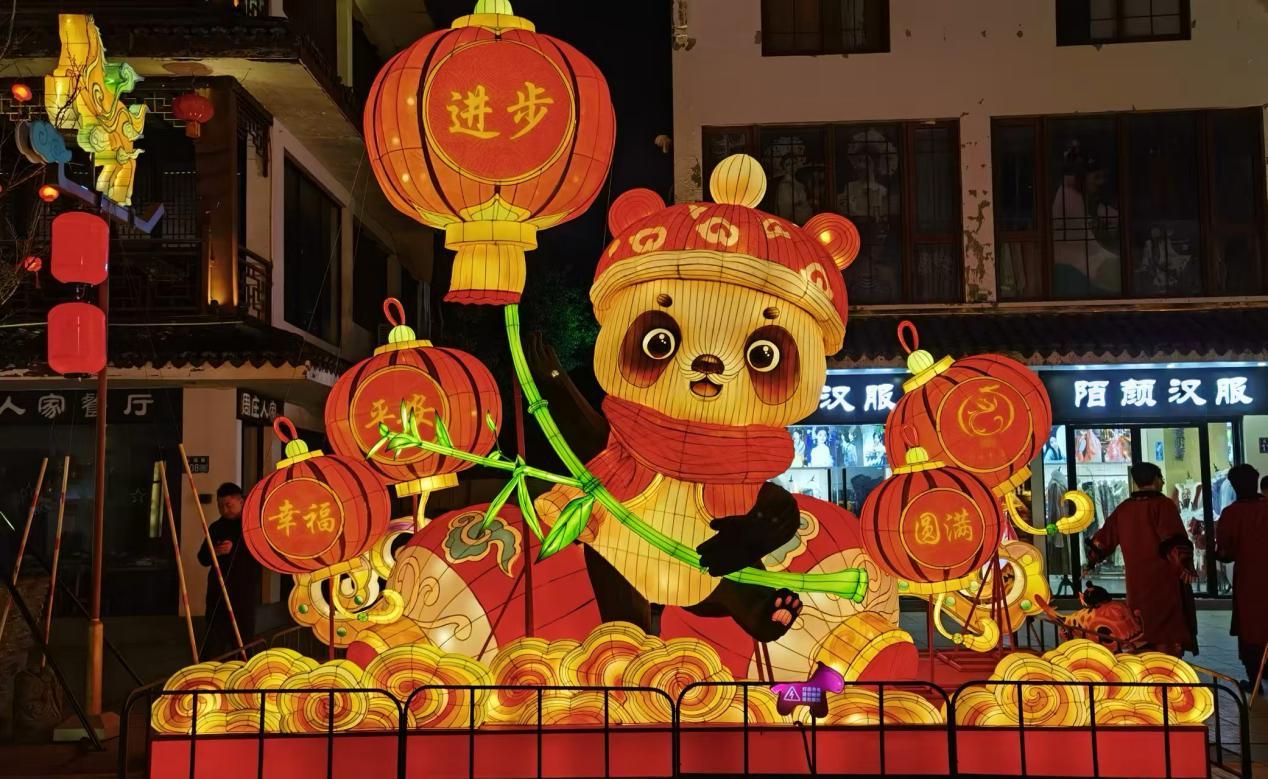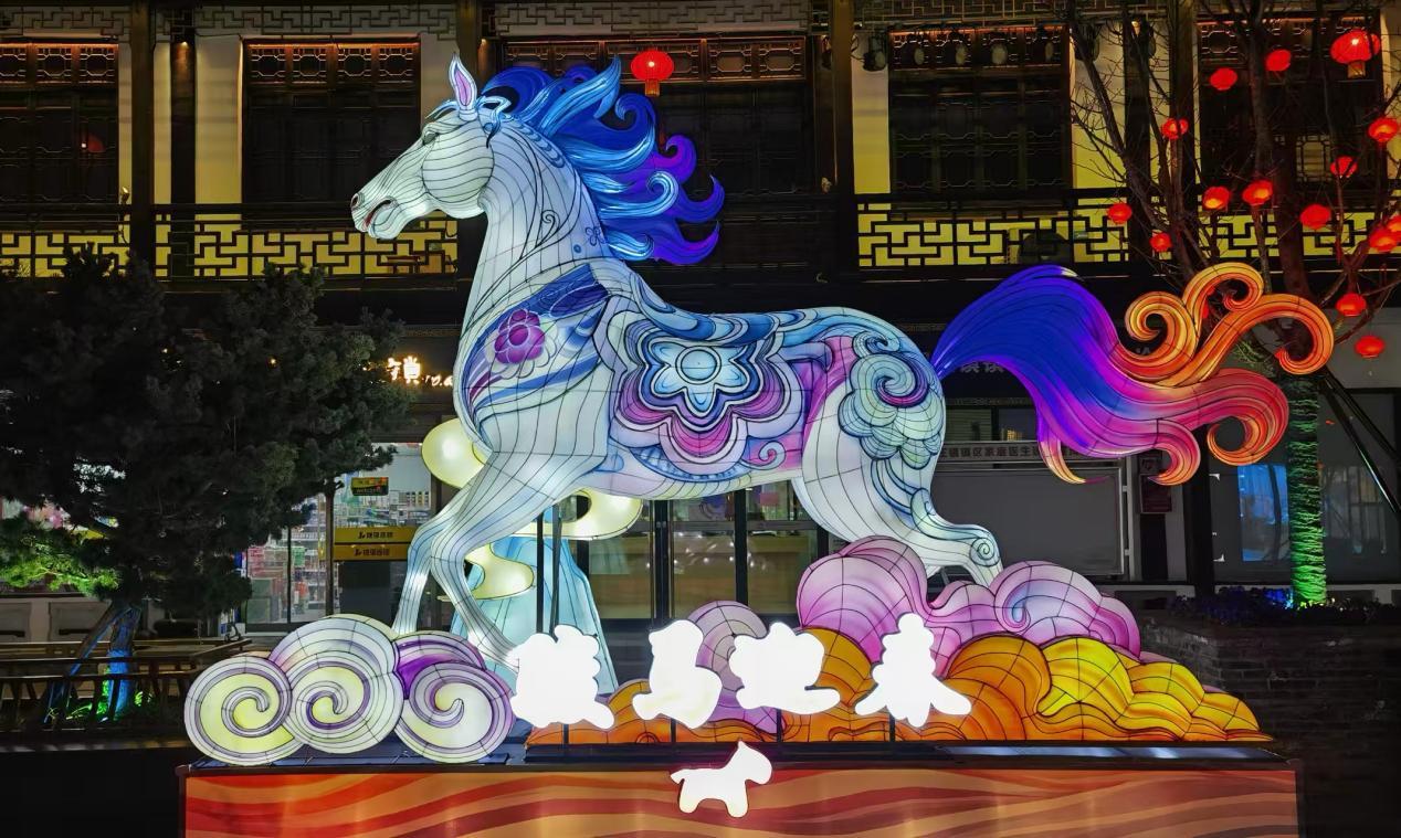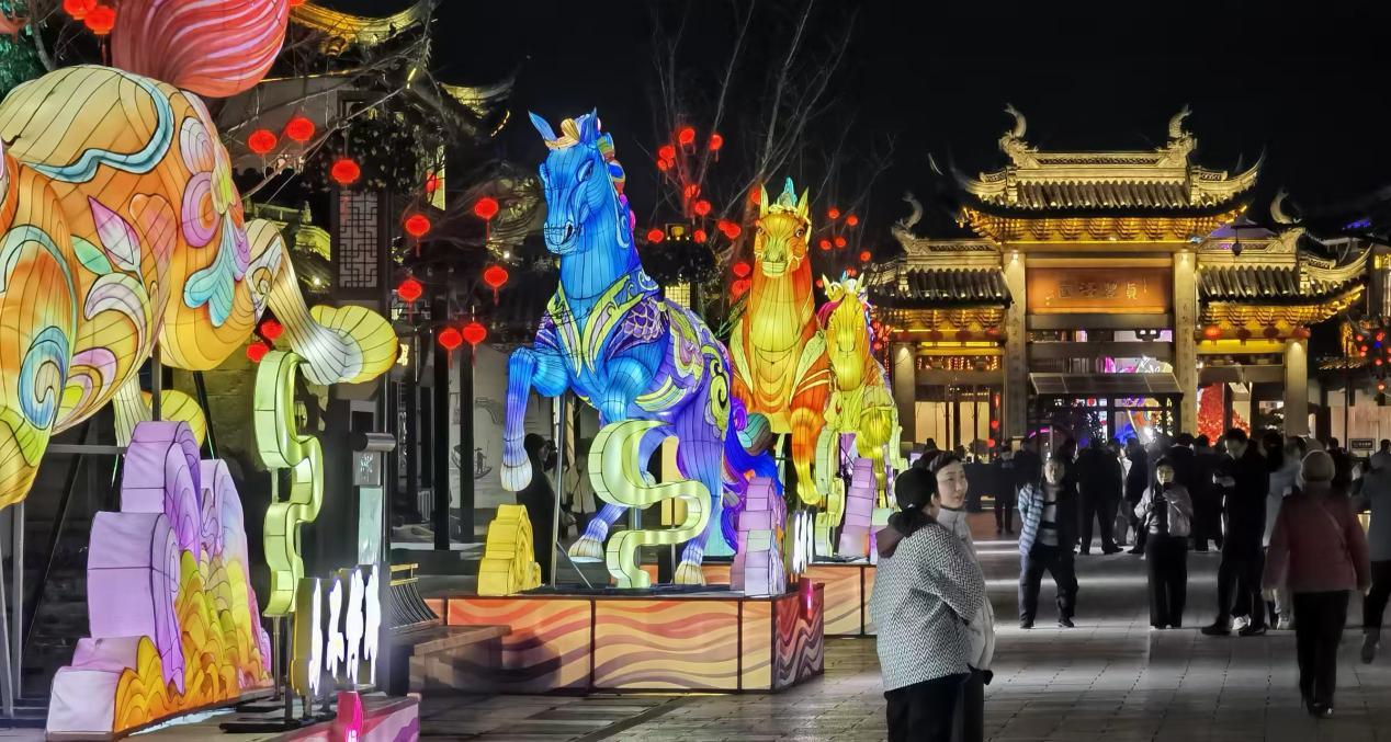 本次灯会精心设置四大特色灯区,亮点纷呈、各有韵味,全方位呈现“灯映水乡、福马送喜”的新春盛景。灯映花集·迎宾区的“马踏春风 一飞冲天”“八骏踏春”等马年主题灯组,将生肖吉祥寓意与江南水乡元素巧妙结合,搭配触摸感应、声控等互动光影技术,让游客沉浸式感受新春氛围;宋韵华章·彩灯区依托《只此周庄》园区肌理,还原宋代江南灯火盛景,全福塔下新增的“灯火江南”灯组与原有经典灯组交相辉映,尽显雅致韵味;南湖夜色·光影区以湖面为幕,搭配光影秀、小型烟花秀,灯光映于碧波之上,打造出浪漫灵动的网红打卡地;梦里水乡·体验区融合国风演艺、猜灯谜等互动活动与文创体验,推出马年创意提灯、水乡特色摆件等产品,让游客在灯影流转中感受江南烟火气。