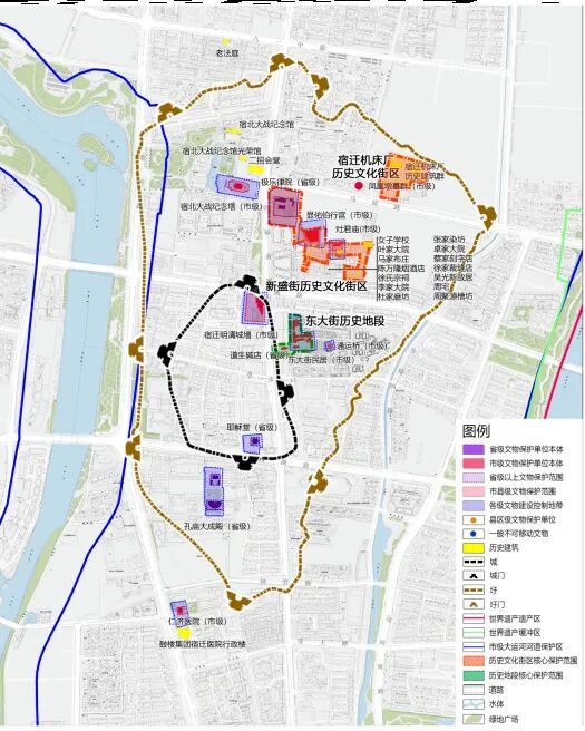 围绕名城申报,宿迁对全域历史文化资源进行了系统梳理。最新统计显示,全市现有世界文化遗产1处,各级文物保护单位277处,历史建筑66处,省级历史文化名镇2个、省级传统村落14个;国家工业遗产2处、中国重要农业文化遗产1处、省级水利工程遗产6处;非物质文化遗产项目323项,非遗代表性传承人684人。