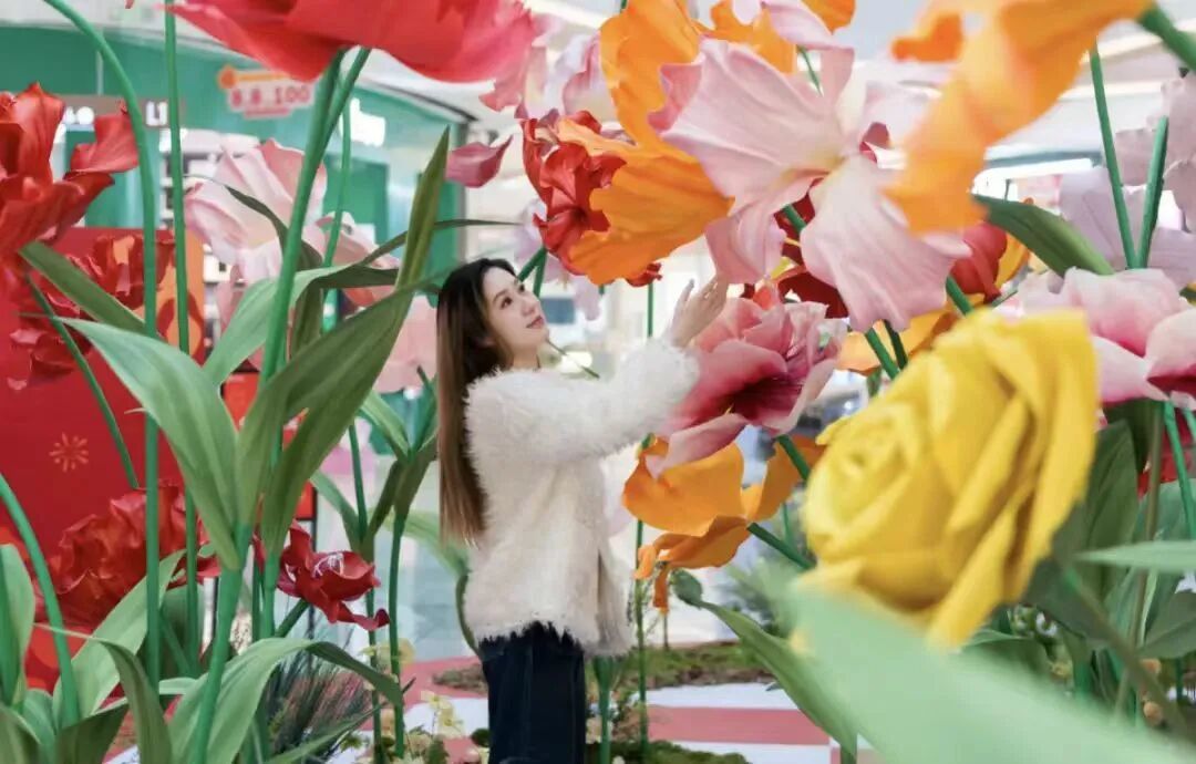 “今天全家出动来虹悦城买年货,没想到还遇到了‘FaFa世界’花园展!”带着孩子在江北虹悦城拍照打卡的市民李女士笑着说,“五颜六色、品种各异的花朵被做成了艺术装置,漫步在花海之中,过一个浪漫的春节。”