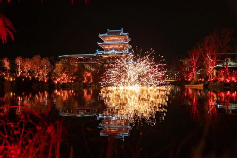 牛首山下的金陵小城年味十足,以“福潮金陵年”为主题,营造出沉浸式六朝新春幻境。白日里古巷雅致,夜晚灯火璀璨,文心馆水域灯笼摇曳,凌霄台巨型福字亮化墙点亮夜色,再现金陵古都的繁华盛景。非遗滚灯、火舞表演、非遗铁花秀等节目轮番登场,火龙踏焰、铁树银花绽放夜空,带来震撼的视觉盛宴。马年福字木板拓印、金陵金箔手作等体验活动,让游客近距离感受非遗技艺的魅力;古风NPC巡游穿梭于街巷之间,与市井烟火相融相生,勾勒出“昼赏禅韵,夜观灯火”的独特金陵年味。