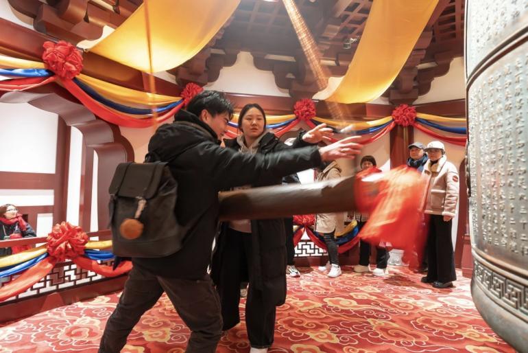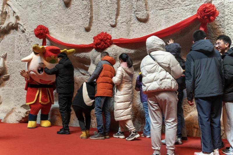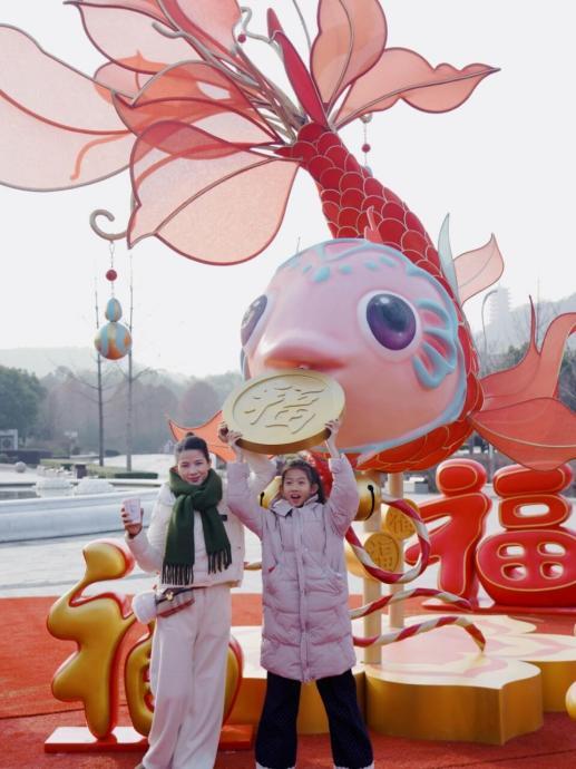 今年除夕,牛首山景区夜场特别开放至凌晨两点,打造辞旧迎新的专属仪式感。游客可漫步山间,瞻礼佛顶骨舍利,登临佛顶塔撞钟迎新,参与祈愿放灯、写福拓福等特色活动,在山水禅境之中告别旧岁、迎接新年,尽享温馨团圆的节日氛围。景区白云泉旁6米高福“游”顶生鸿运锦鲤艺术装置成为人气打卡点,锦鲤尾翼化作盛放莲花,祥瑞灵动的造型与新春氛围相得益彰。