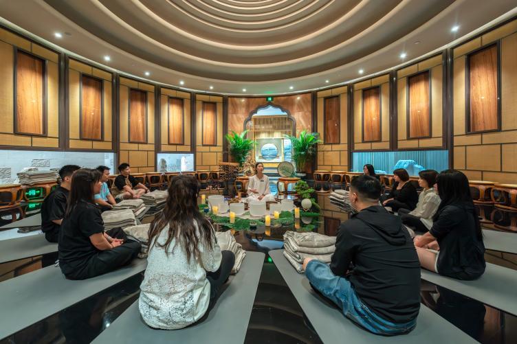 酒店还精心设置八段锦、音钵唱诵、亲子瑜伽等疗愈课程,为游客提供放松身心的休闲选择;五谷丰登、幸运转盘、骰子乐翻天等银票互动游戏趣味十足,赢取的银票可抵扣餐饮消费、兑换马年公仔、福字卷轴等新春好礼。酒店内“牛首抱福”小马雕塑、“一摇就灵”主题装置氛围感拉满,社交媒体打卡即可收获惊喜,年夜饭套餐与景区门票联动福利,更让全家出游便捷省心、暖意融融。