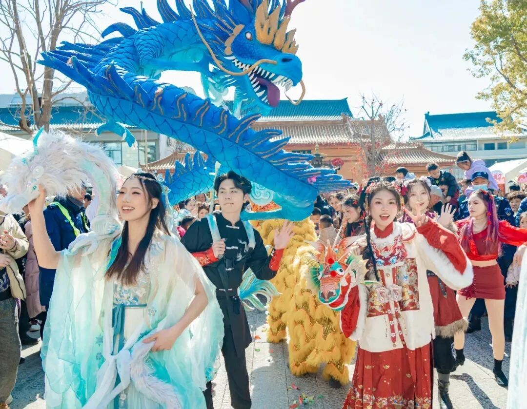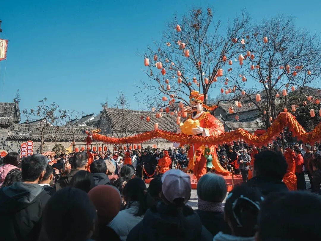 红墙黛瓦间挂起灯笼与福字,非遗市集、民俗展演,一步一景、处处有戏。