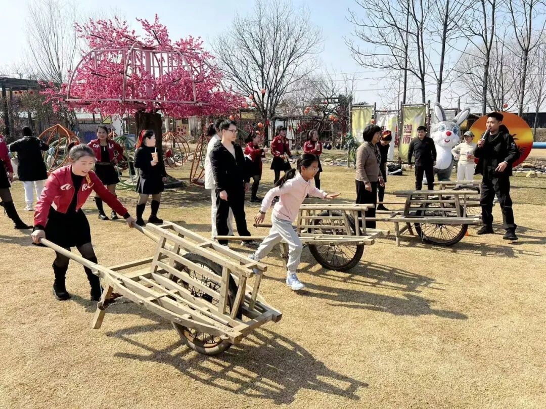 迦南农场里,一场别开生面的趣味运动会火热进行。抓鸡、独轮车、二八大杠、挑扁担……十多个乡土味十足的项目,让大人小孩乐翻了天。欢呼声、掌声、加油声交织在一起,为游客献上一场热闹非凡的新春盛宴。