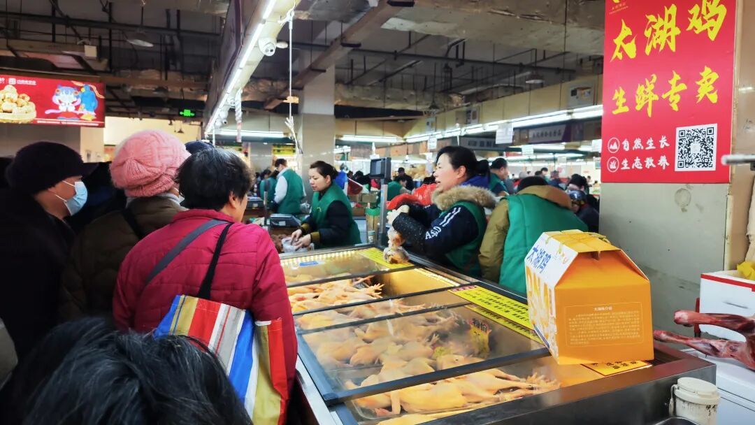 开业当天,现场气氛热烈,不少市民一早便赶来抢购。8时许,陈老伯直奔太湖鸡摊位,挑了一只3.1斤的母鸡:“无锡人吃鸡就得吃自己的太湖鸡!还是小时候那个味道,以前也就逢年过节才能吃上一回,现在方便了,想吃就能买,还吃得放心!”