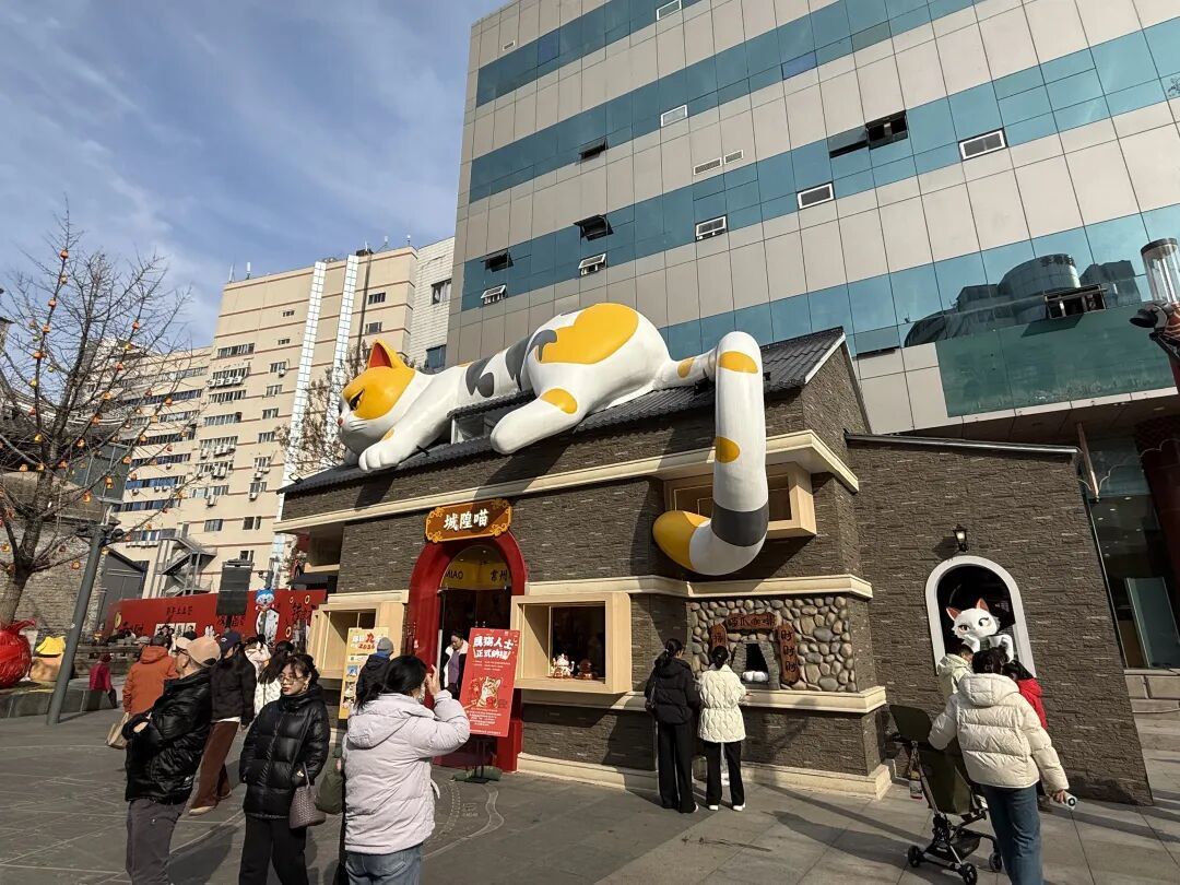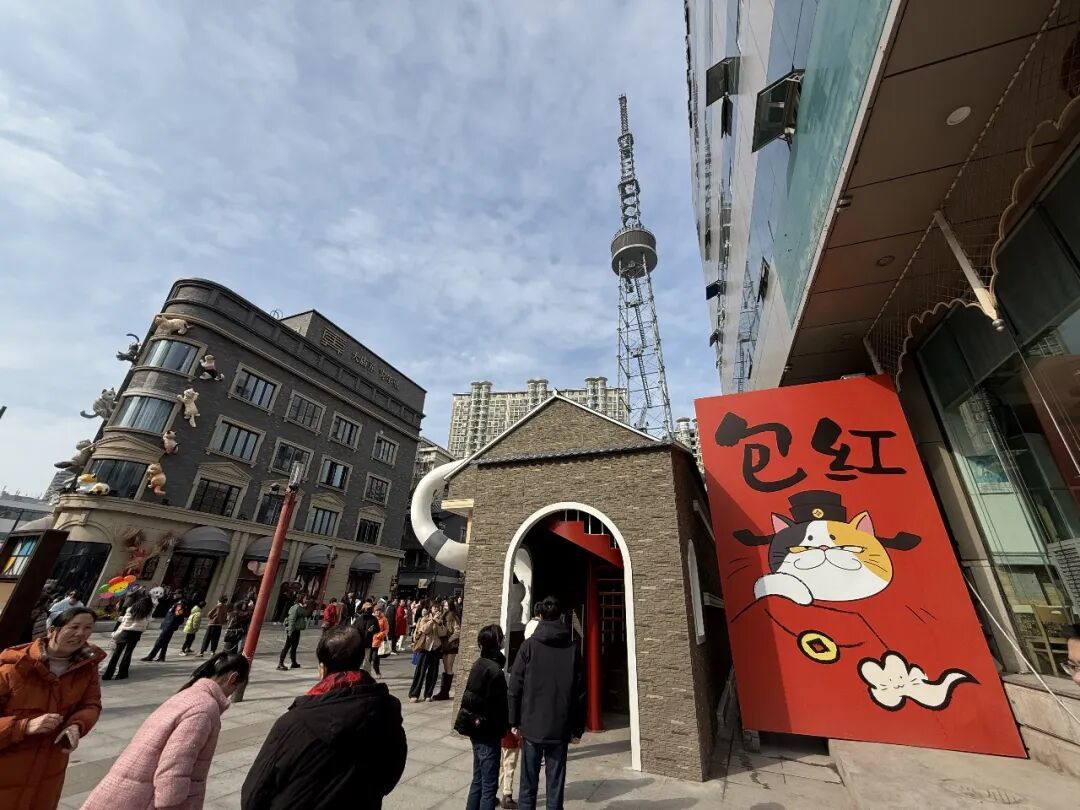不远处的大庙弄·青年里,更是老城厢转型的生动样本。保留民国街巷肌理与历史文脉,植入猫主题潮流元素、文创非遗、青年社交业态,打造“历史+潮流+消费”沉浸式街区。春节期间,庙会市集、特色摊位人气爆棚,老字号美食与新潮小吃同台飘香,让老街区变身网红打卡地,实现文化赋能商业、流量转化消费的双赢。