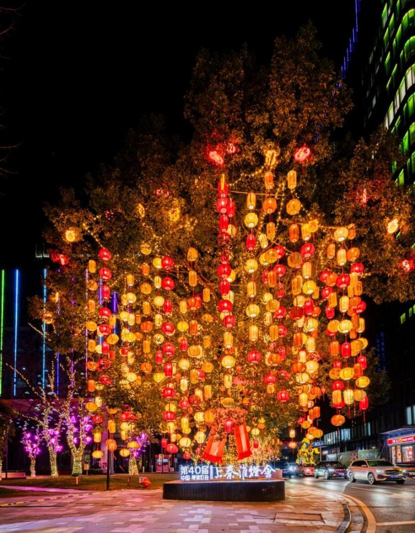 而在浓浓六朝文化的金陵小城,将江南园林与六朝风雅浓缩一园,暮色中灯笼初上,仿佛一秒穿越。演出花样不断,《火舞呈祥》《福禄寿喜》《财神财女》《滚灯映金陵》……将人们对新年的所有期待都具象为耀眼的美。