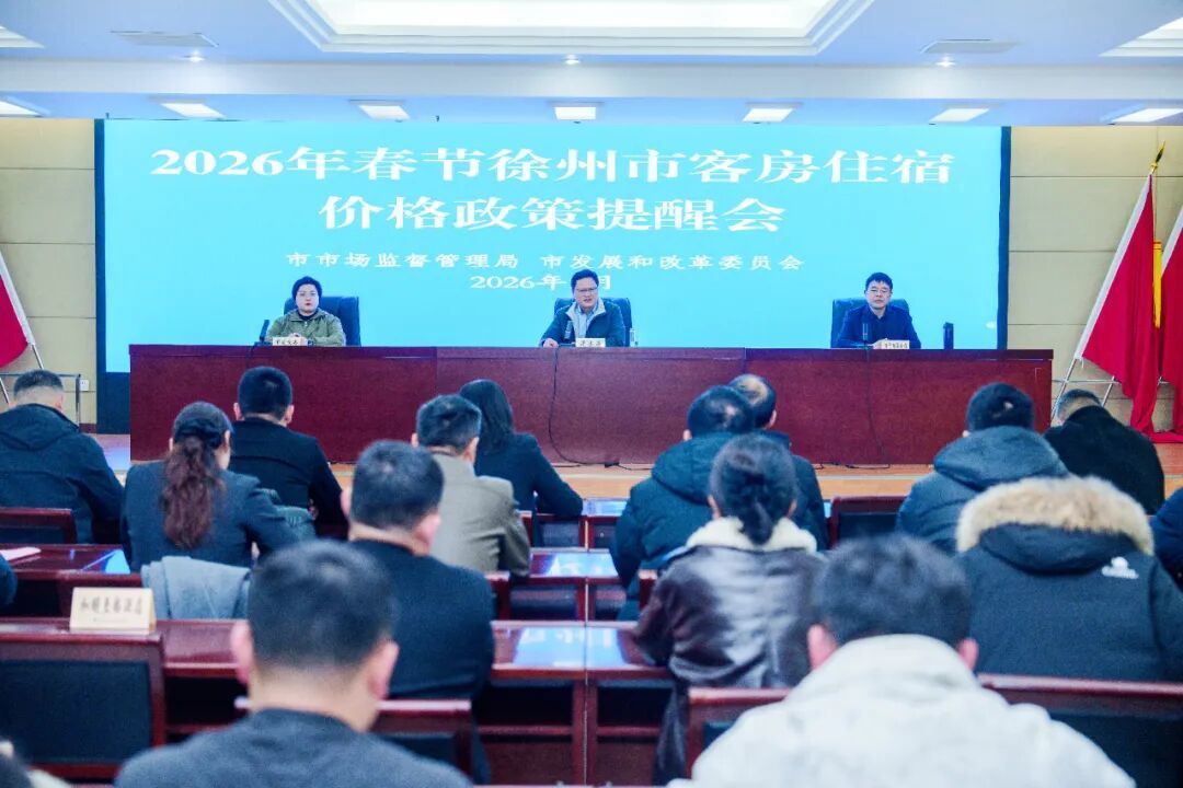 为进一步规范全市节日宾馆客房住宿价格秩序,营造放心舒适的节日消费环境,日前,徐州市市场监管局、市发改委联合召开2026年春节期间客房住宿价格政策提醒会。