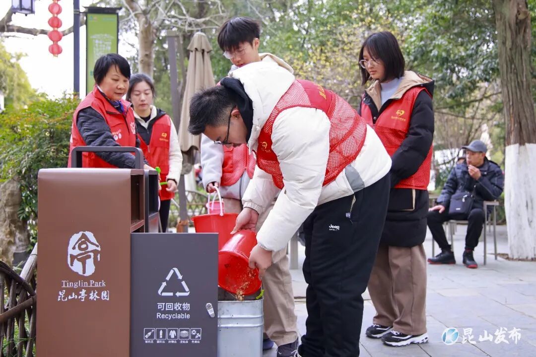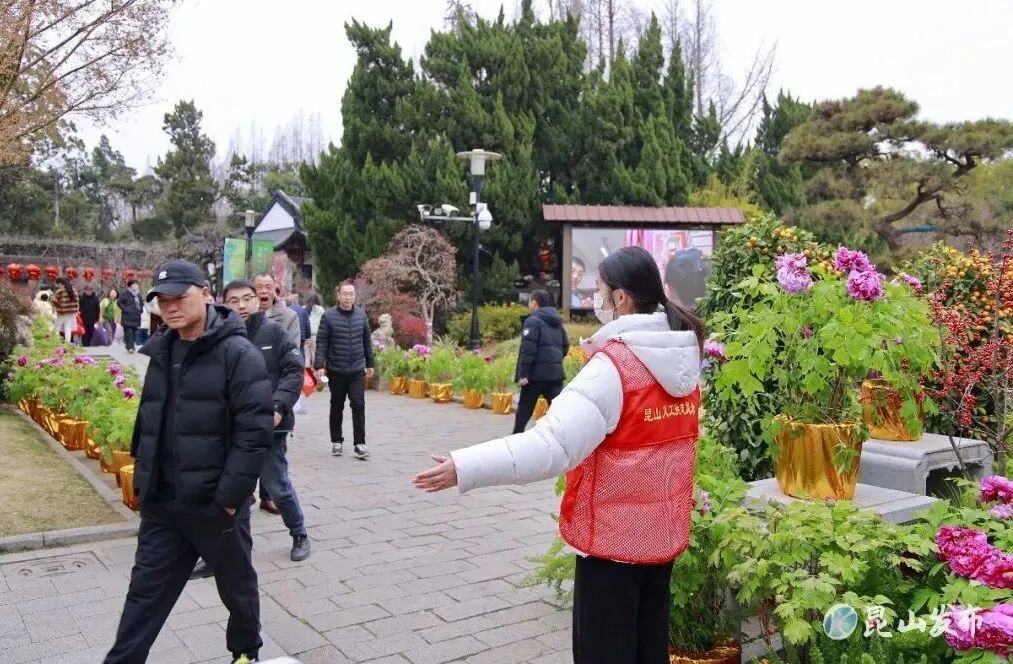 “红马甲”志愿者是流动风景线。据昆山市义工联合会理事段冰介绍,春节期间,亭林园客流量都有数万人次,为此,亭林园加派志愿者,在客流量大的地方,进行引导巡视工作。春节期间,每日有20余人次志愿者坚守岗位,捡垃圾、助老指引、提醒灯会安全,在山高水长、龙泉牡丹亭等热门打卡点形成流动服务网。