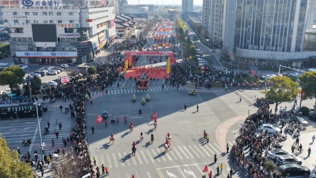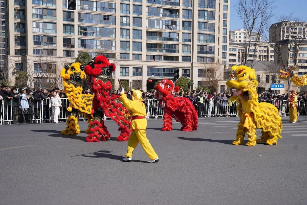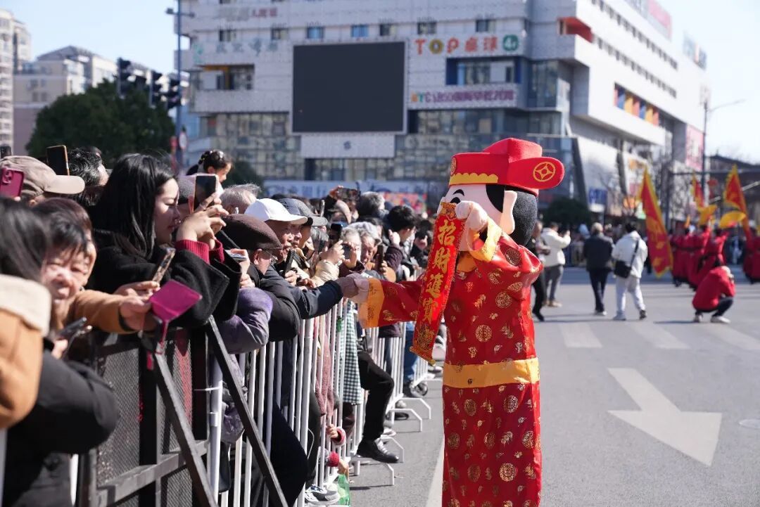 锣鼓《欢庆》气势昂扬,庄重的祈福仪式寄托新春美好愿景。上午10时,全体参演方阵完成集体表演后,巡游队伍正式出发。本次巡游沿江海东路—江海中路—青园路—黄海路—人民路行进,全程采用“行进表演+定点表演”相结合的形式,每行进200米左右开展一次集中展演,让近5万沿街市民近距离感受传统民俗魅力。