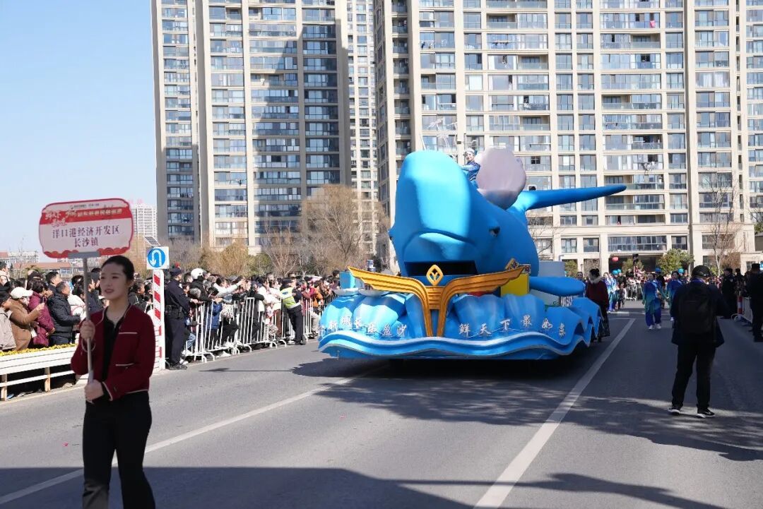 栟茶镇方阵融合古镇烟火情景、汉服快闪、青春花鼓与浒澪花鼓,尽显水乡古韵;丰利镇方阵以大头娃娃、荡旱船、河蚌等传统民俗道具,生动再现市井欢乐;洋口港、长沙镇方阵以“海洋生态与产业发展”主题花车为载体,展现港渔共生、产业兴城的滨海风貌;曹埠镇方阵带来《梿枷号子》《抬嫁妆号子》《拉小会儿》等民俗歌表演,唱响乡土风情;岔河镇方阵将舞蹈、足球与苏超元素有机联动,展现青春活力;城中街道方阵以汉服、大花轿为载体,演绎“百鸟朝凤·十里红妆”的喜庆盛景……16个镇(区、街道)特色方阵轮番亮相、各展风采,全域联动、精彩纷呈,集中展现各镇风采与地域文化魅力。