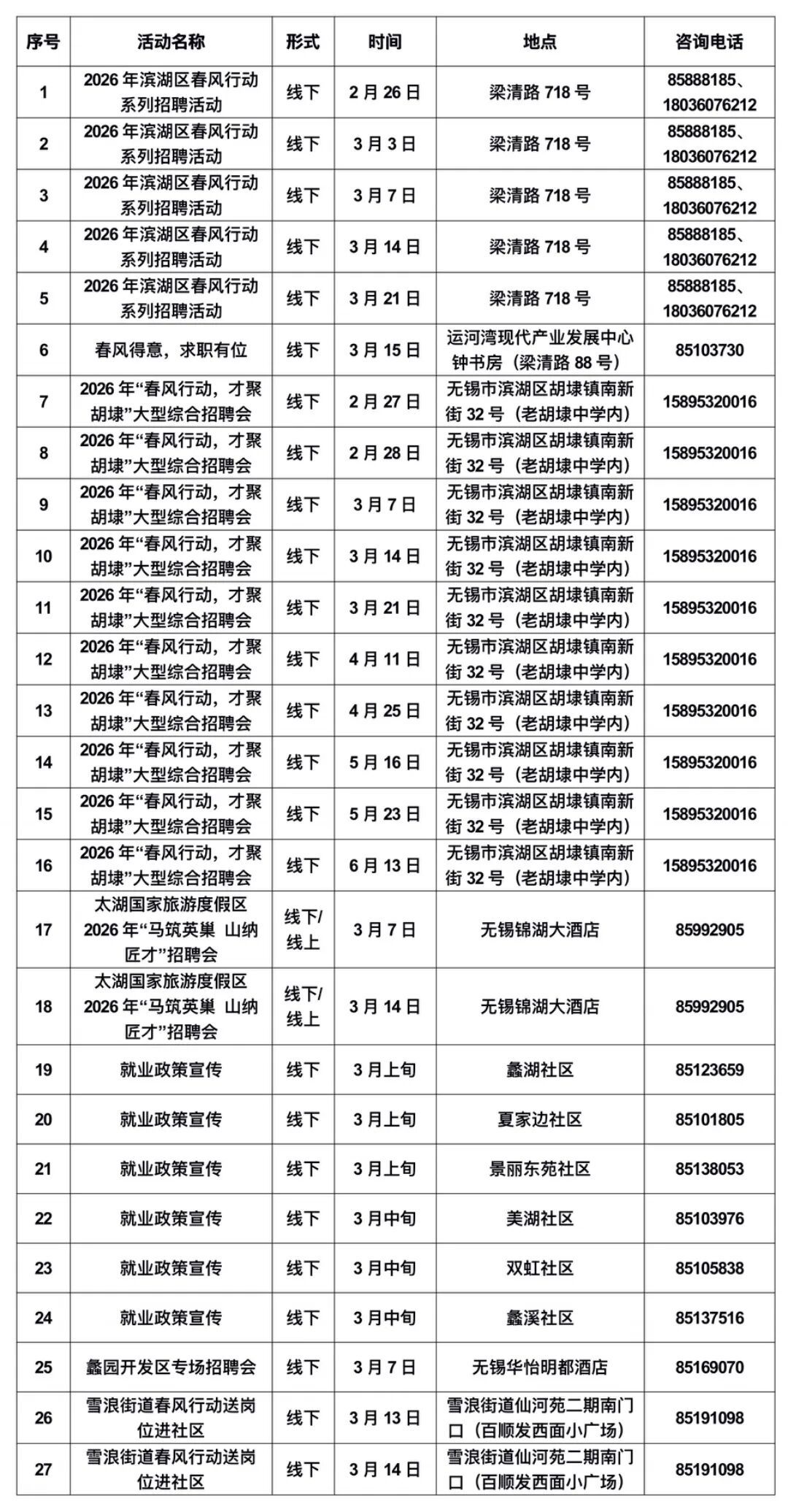 线上、线下结合,依托线下滨湖区“春风行动”系列招聘会活动、线上“滨湖爱就业”“滨湖就业”服务平台和“无锡滨湖就业在线”抖音直播带岗,“滨湖就业小程序”网络平台7*24小时不打烊,搭建多平台供需对接渠道,提供全方位就业创业服务。