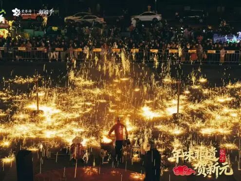 梁溪爱琴海购物中心,千年傩戏首登无锡,粗犷面具与原始之舞带来跨越时空的文化震撼。夜幕下,火壶舞动、打铁花飞溅,万千金花在夜空绽放,掌声与惊叹声久久不息。