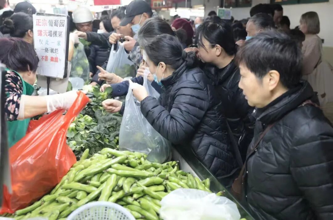 朝阳农贸市场、盛岸菜场等网红菜场年味浓厚,爆鱼、炸猪排等窗口前排起长队,烟火气拉满。市民们拎着大包小包的年货,在吆喝声与讨价还价声中感受最质朴的年味。全区重点保供企业累计肉类销售395.13吨,蔬菜销售8379.8吨,充足的供应、平稳的价格,让百姓的“菜篮子”拎得稳、过好年。