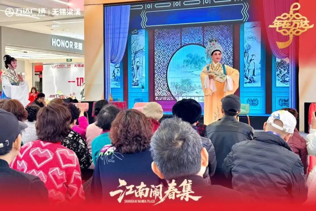 “非遗进商圈”锡剧快闪在梁溪万达温情开启。一楼中国黄金旁搭建起精致的锡剧主题快闪区,精美戏服与头冠静静陈列,细述锡剧源流故事。在新春期间,原汁原味的非遗锡剧演出精彩上演,百年戏韵在商场中庭生动流淌。