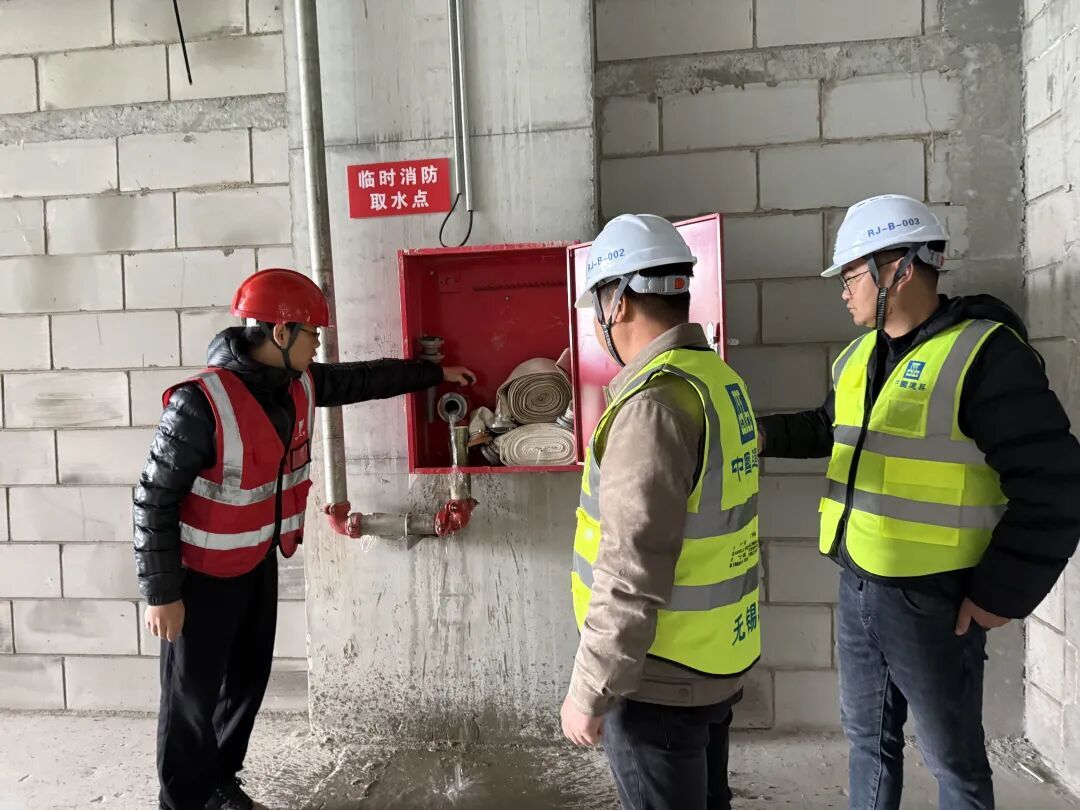 各区域负责人正对幕墙龙骨、装修材料、电路、消防设施等开展复工前“体检”。
