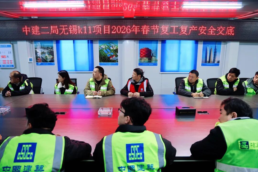 2月27日上午,位于太湖新城贡湖大道与震泽路交叉口西南侧的K11 Select购物艺术中心施工现场一片忙碌,190多名首批到岗的建设者正紧锣密鼓地开展复工准备。