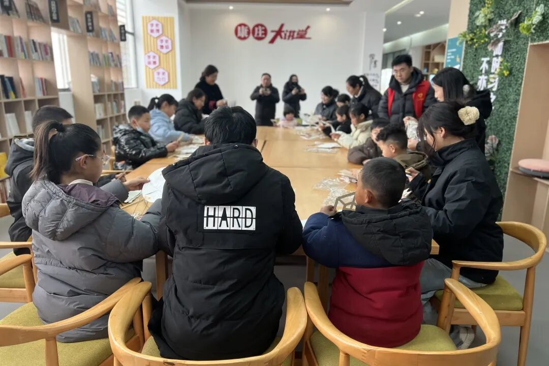 青年志愿者与孩子们结对互动,使用非遗花草纸制作节日灯笼,在欢声笑语中拉近心与心的距离。